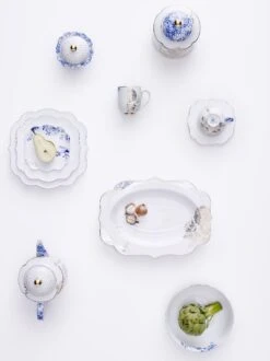 This large bowl is decorated all around with exotic flowers and birds, golden details and a butterfly. The background has an elegant print and elements from the design adorn the inside of the bowl. Combines beautifully with the other porcelain sets in the Blushing Birds collection.