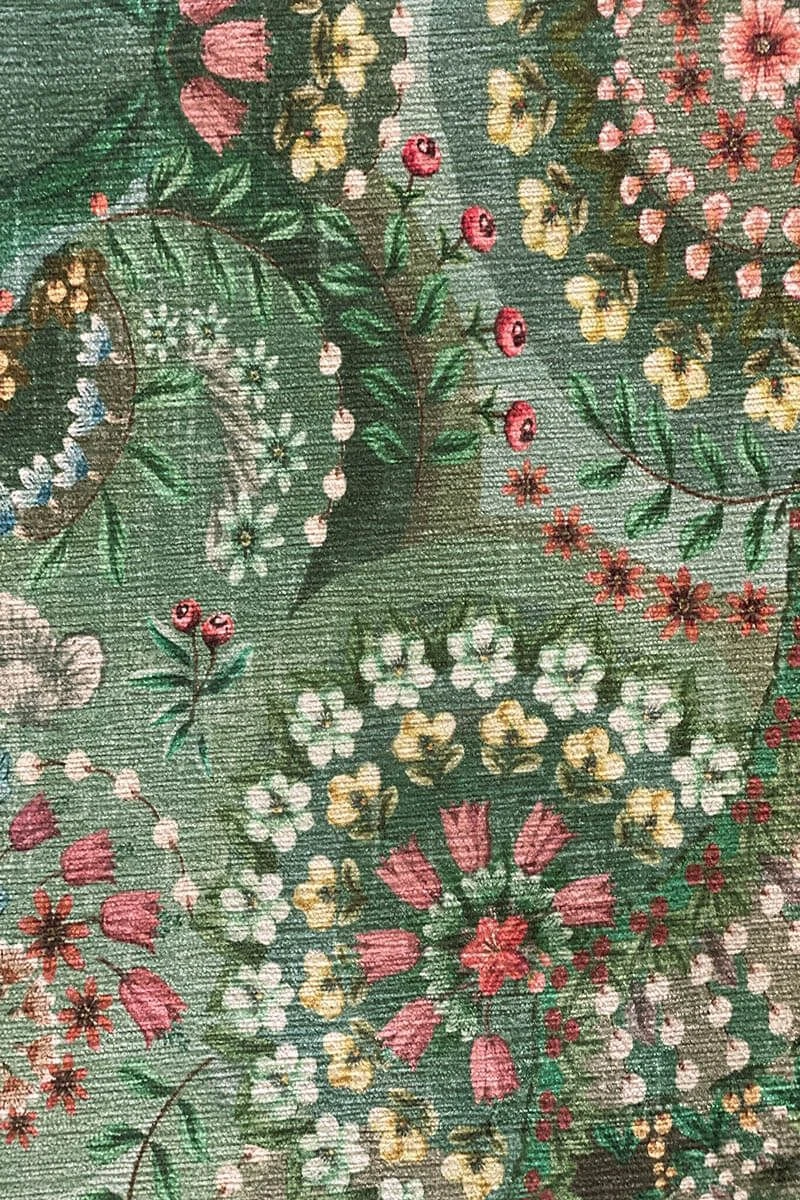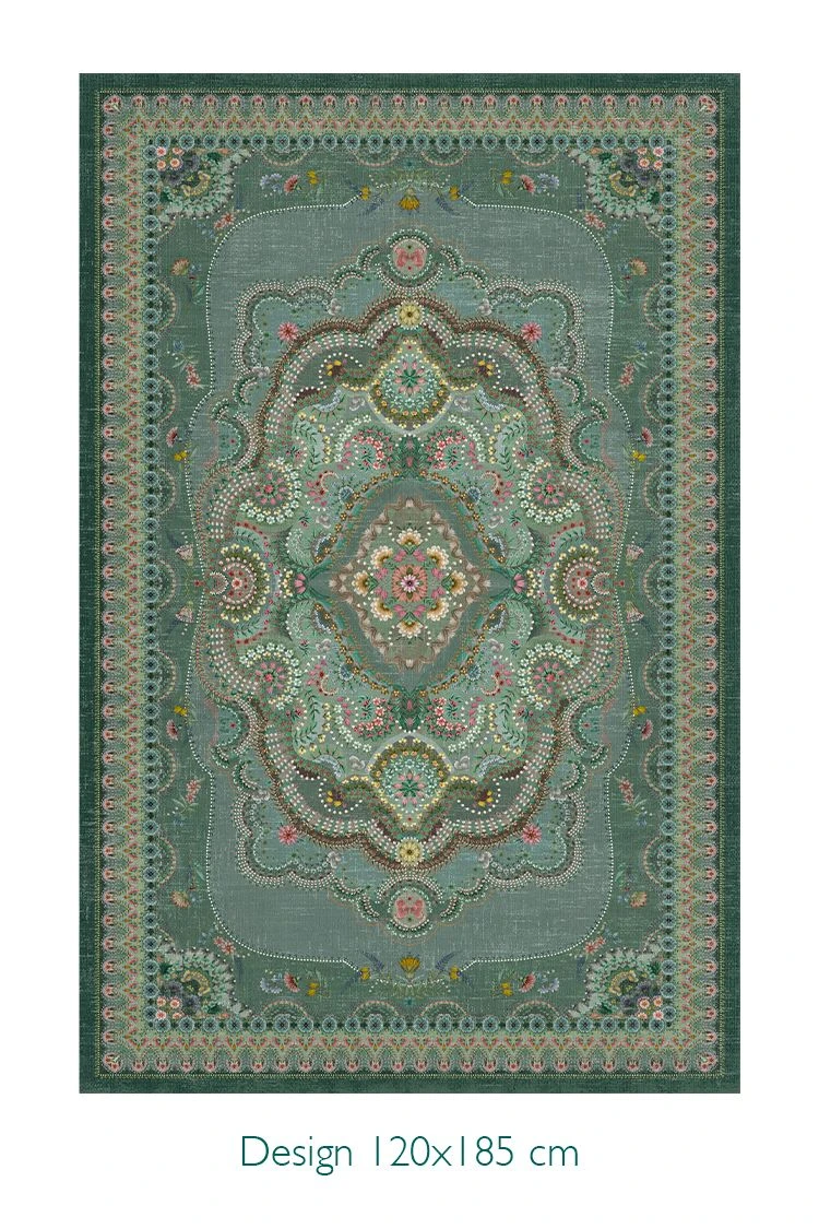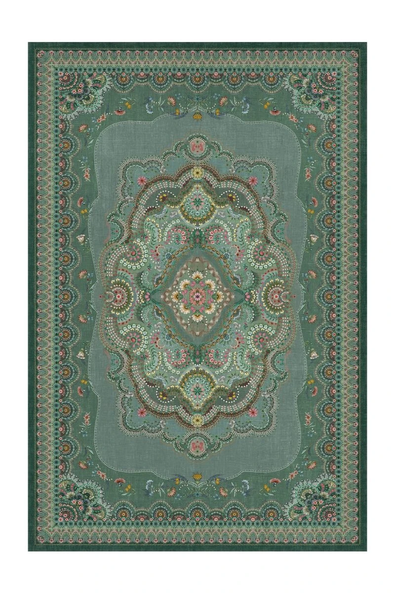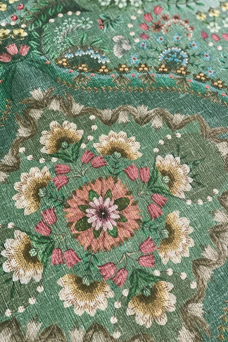 The Majorelle collection has been expanded with a beautiful carpet in the colour green. Colourful flowers on a softly coloured background give this carpet a vintage look with a contemporary twist. The carpet is perfect to use to style the living room or bedroom.