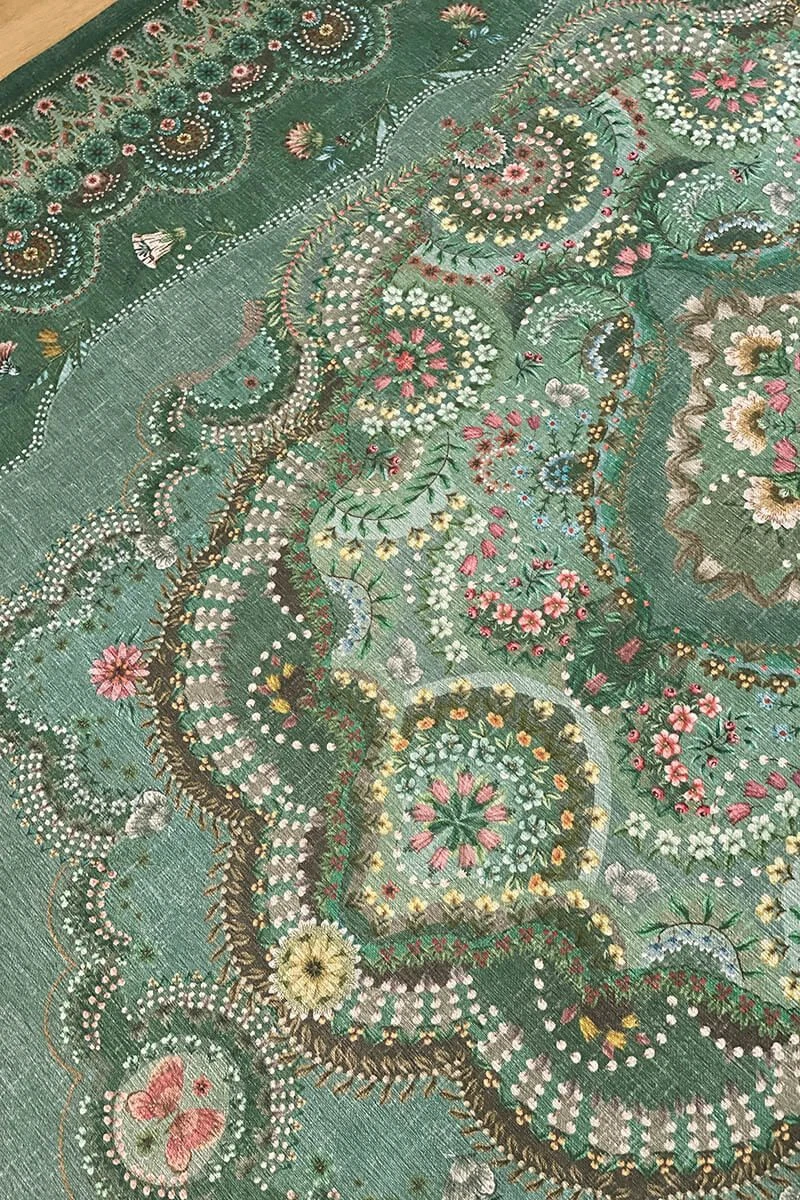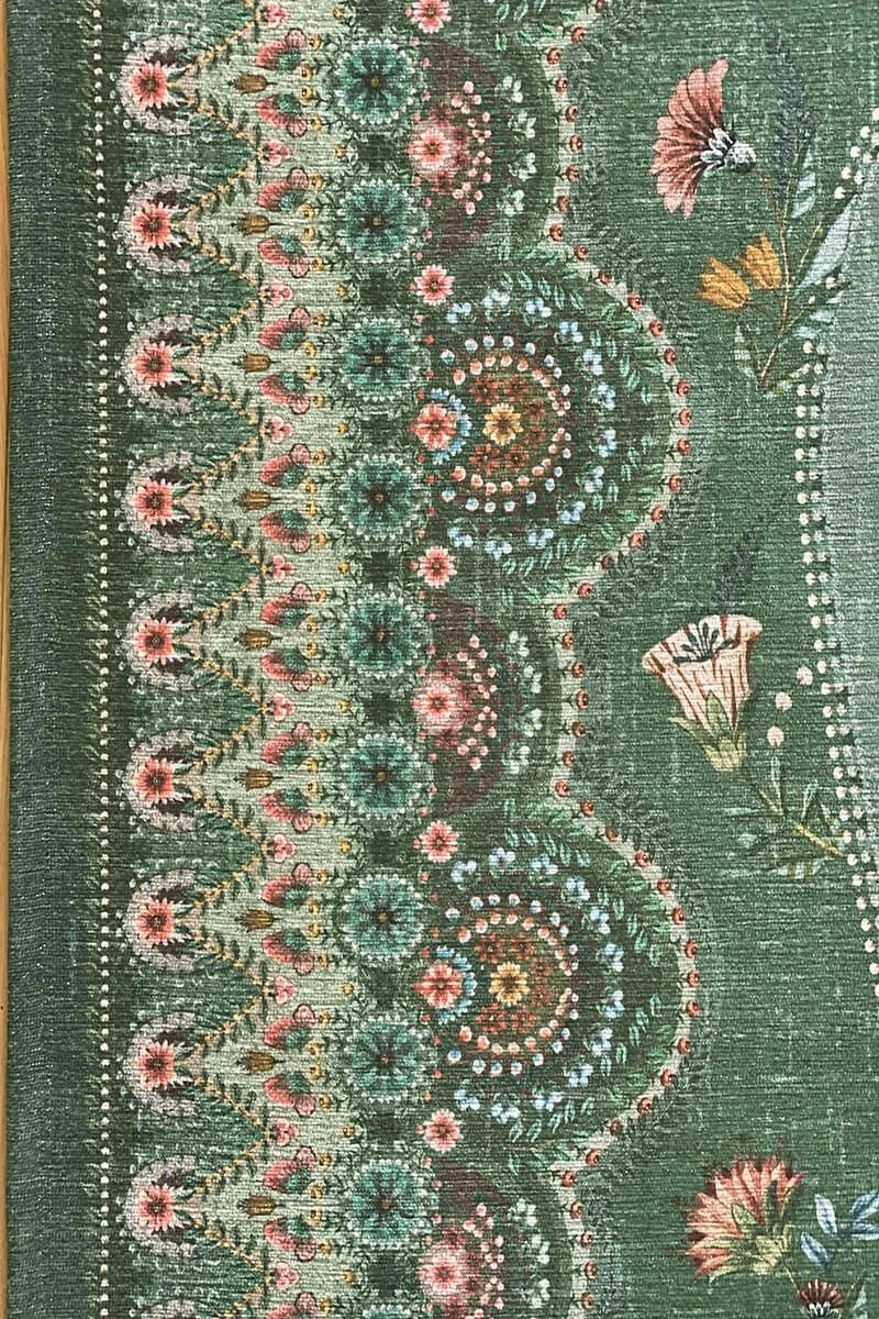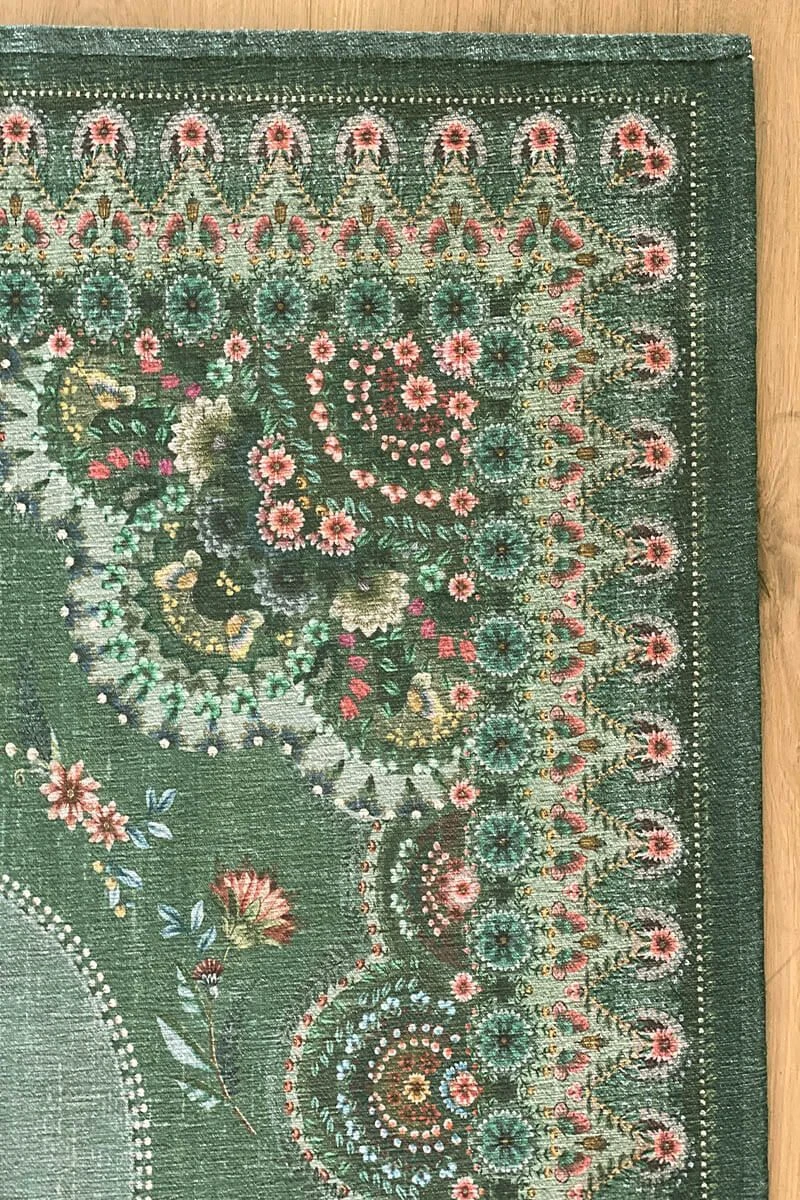 The Majorelle collection has been expanded with a beautiful carpet in the colour green. Colourful flowers on a softly coloured background give this carpet a vintage look with a contemporary twist. The carpet is perfect to use to style the living room or bedroom.