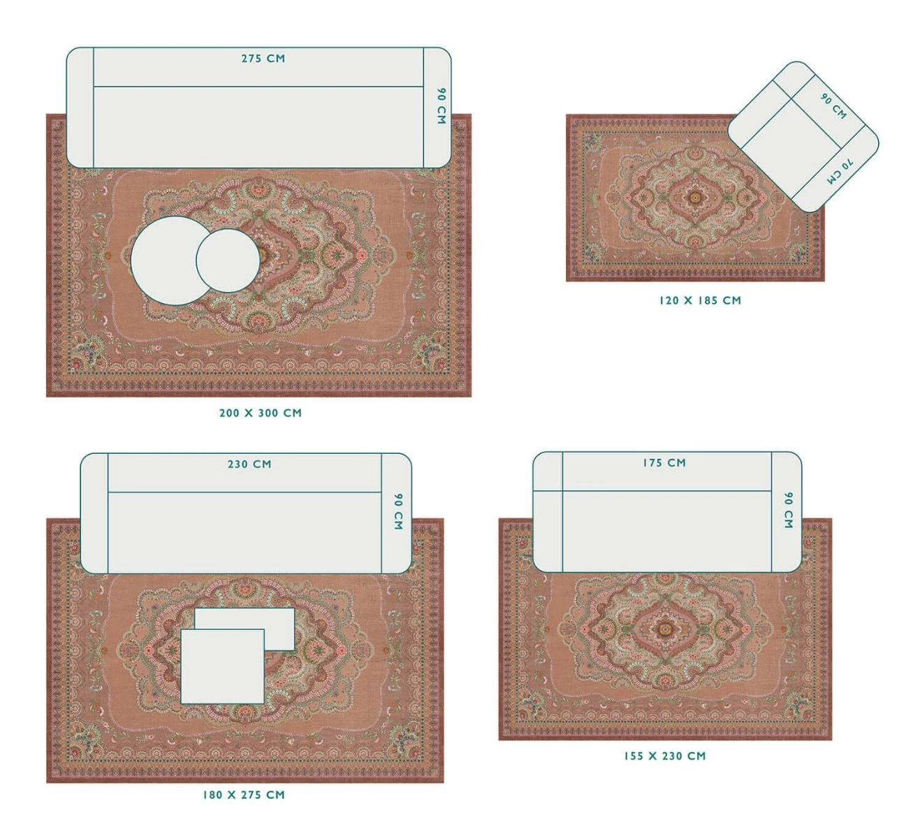 - Available in sizes: XS = 120×185 cm, S = 155×230 cm, M = 185×275 cm en L = 200x300cm