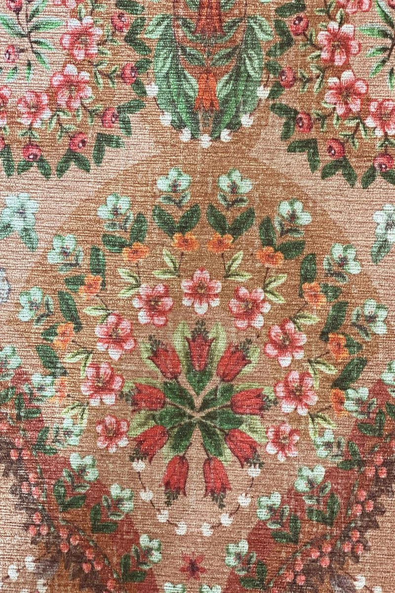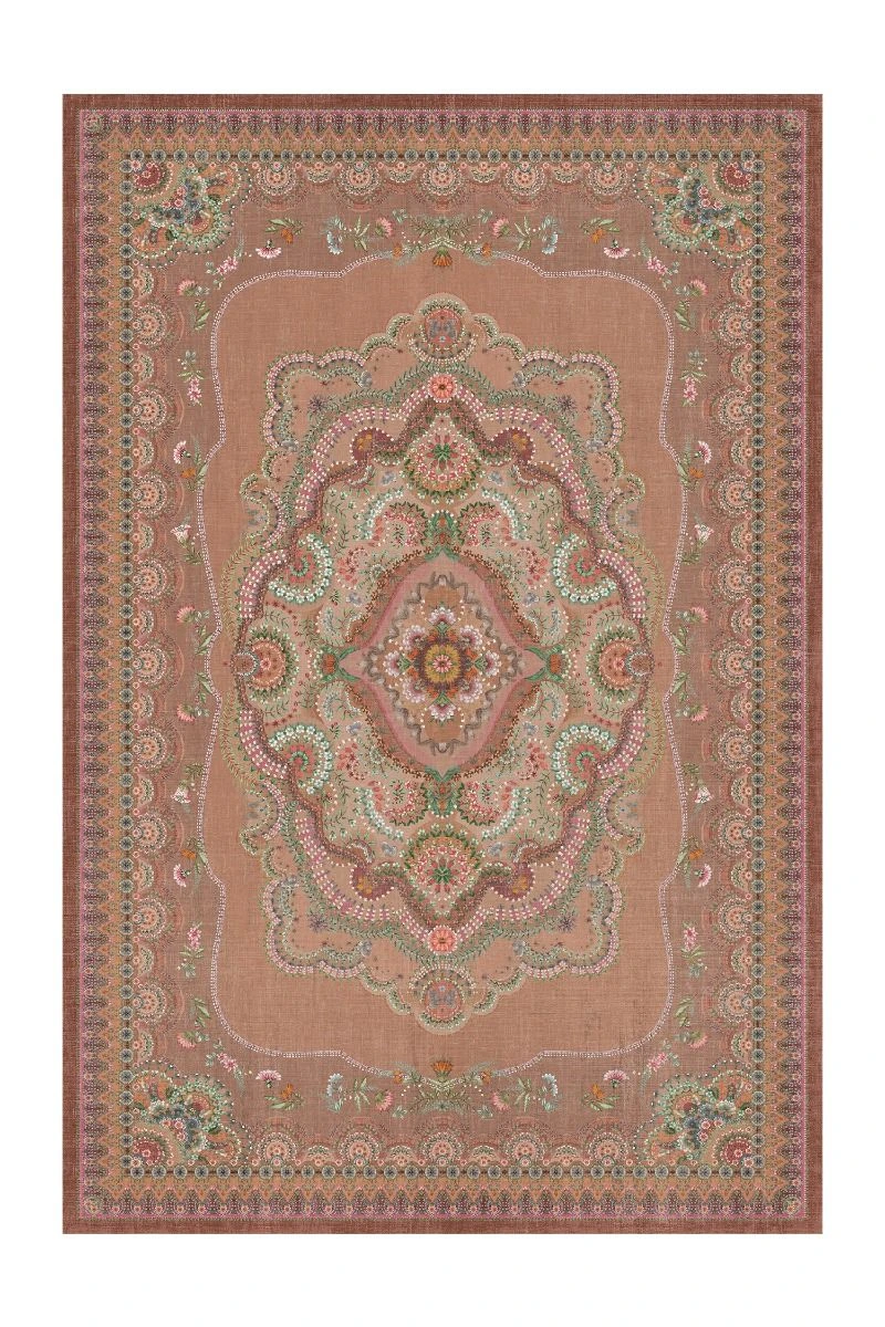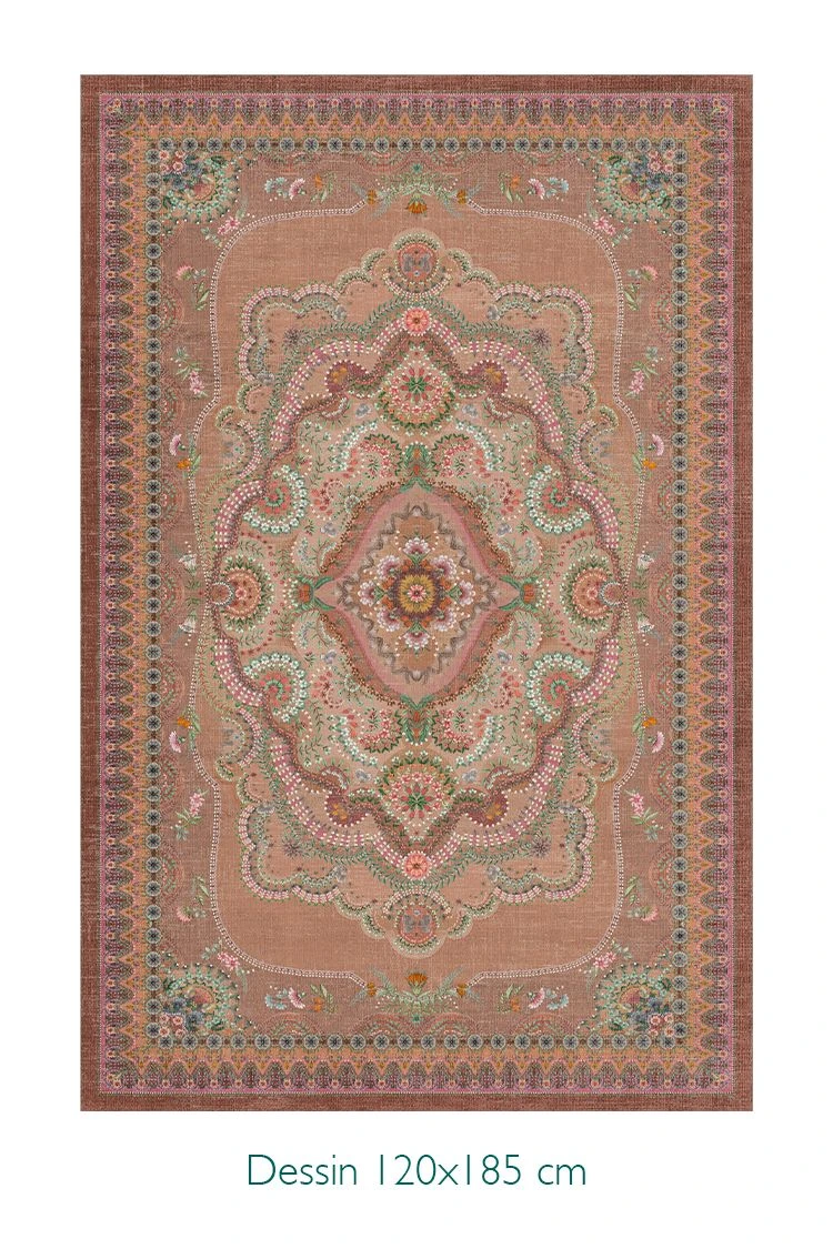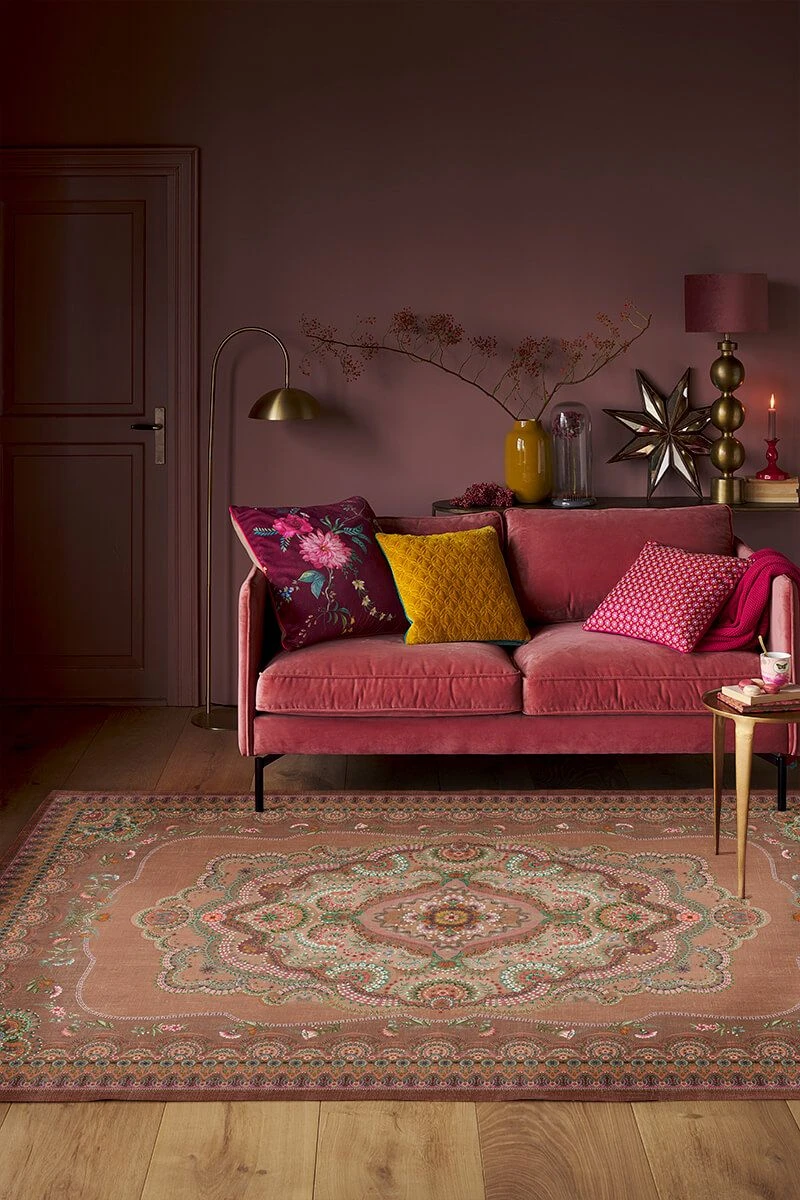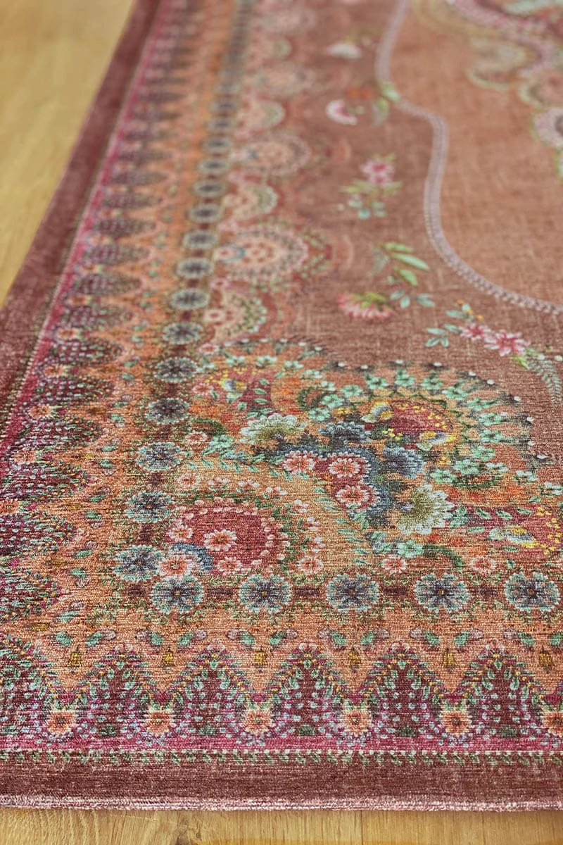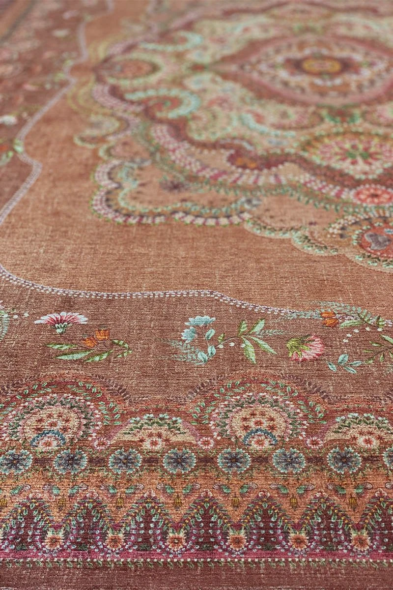 The Majorelle collection has been expanded with a beautiful carpet in the colour terra. Colourful flowers on a softly coloured background give this carpet a vintage look with a contemporary twist. The carpet is perfect to use to style the living room or bedroom.