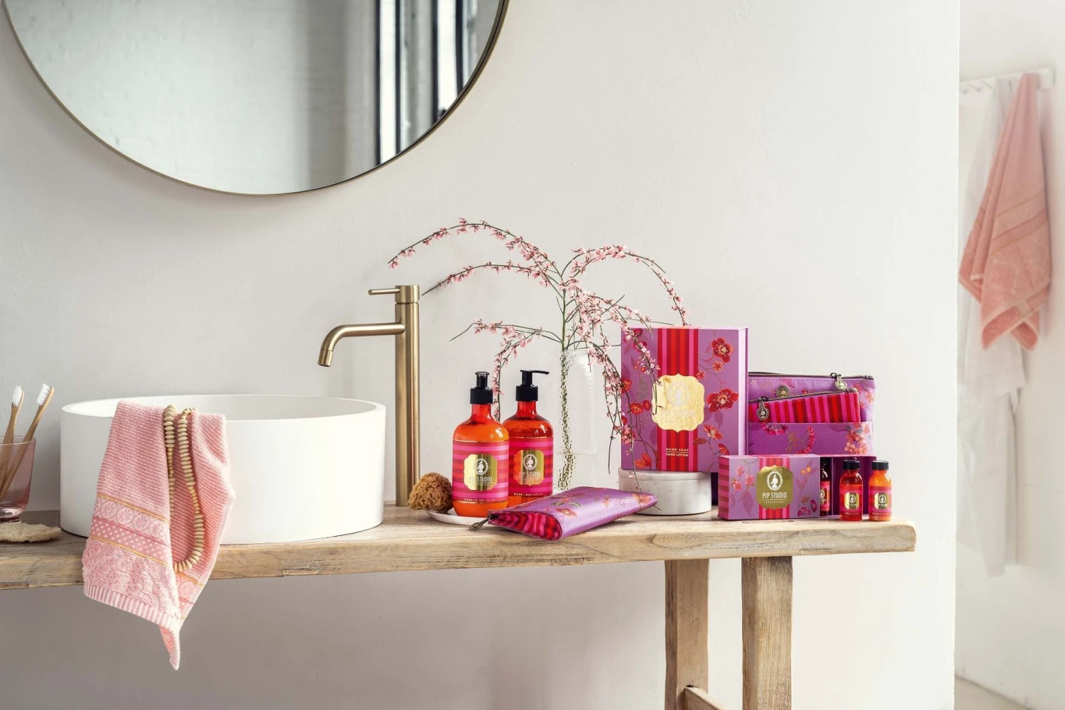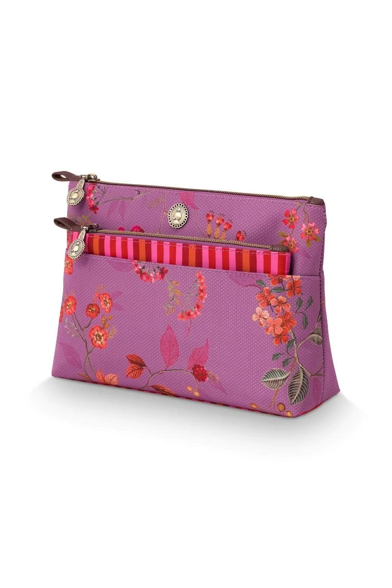 With this toiletry bag from the Kawai Flower collection you always have your favourite beauty products within reach. The toiletry bag is decorated with graceful twigs on which imaginative buttercups, poppies, anemones and marsh marigolds grow. The toiletry bag has two compartments and is finished on the inside with a design of symmetrical horizontal stripes.