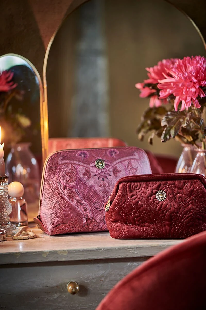 With this toiletry bag from the Kyoto Festival collection you always have your favourite beauty products within reach. The toiletry bag is decorated with a unique variation of imaginative chintz flowers and leaves and consists of two compartments and several small compartments. The inside is finished with a design of stylized arches.
