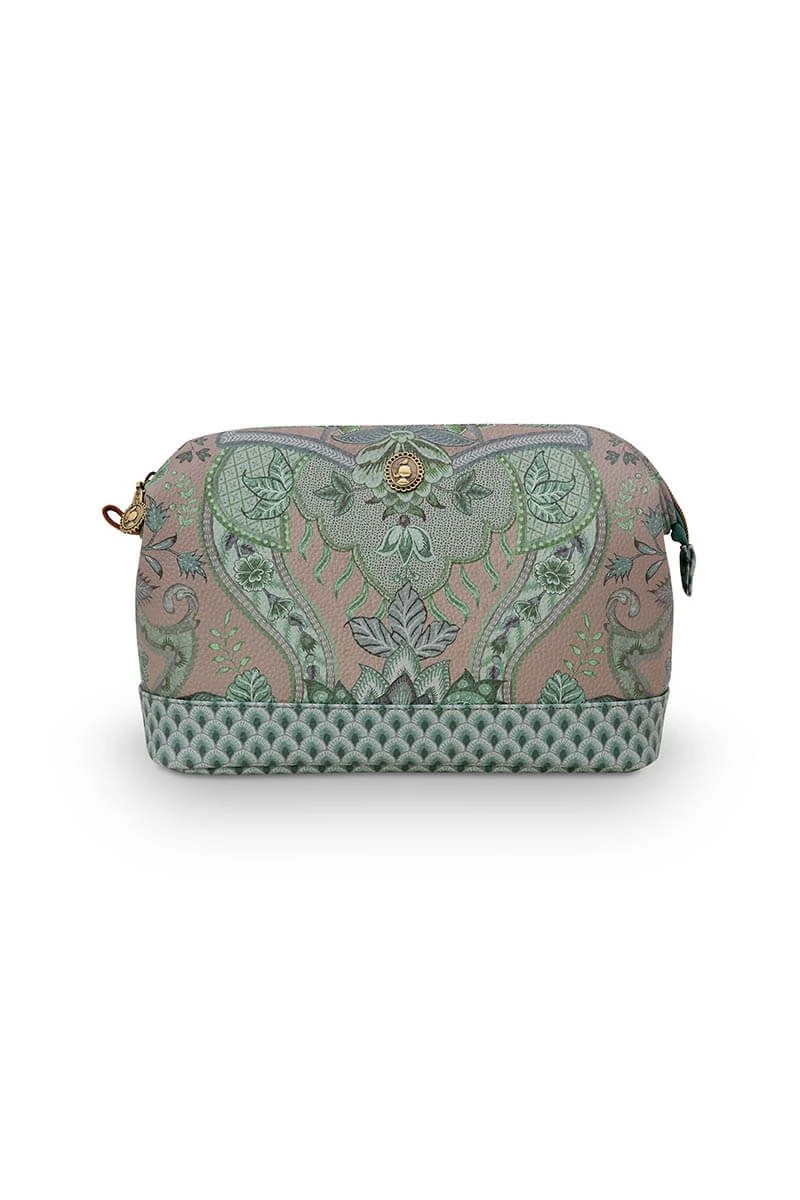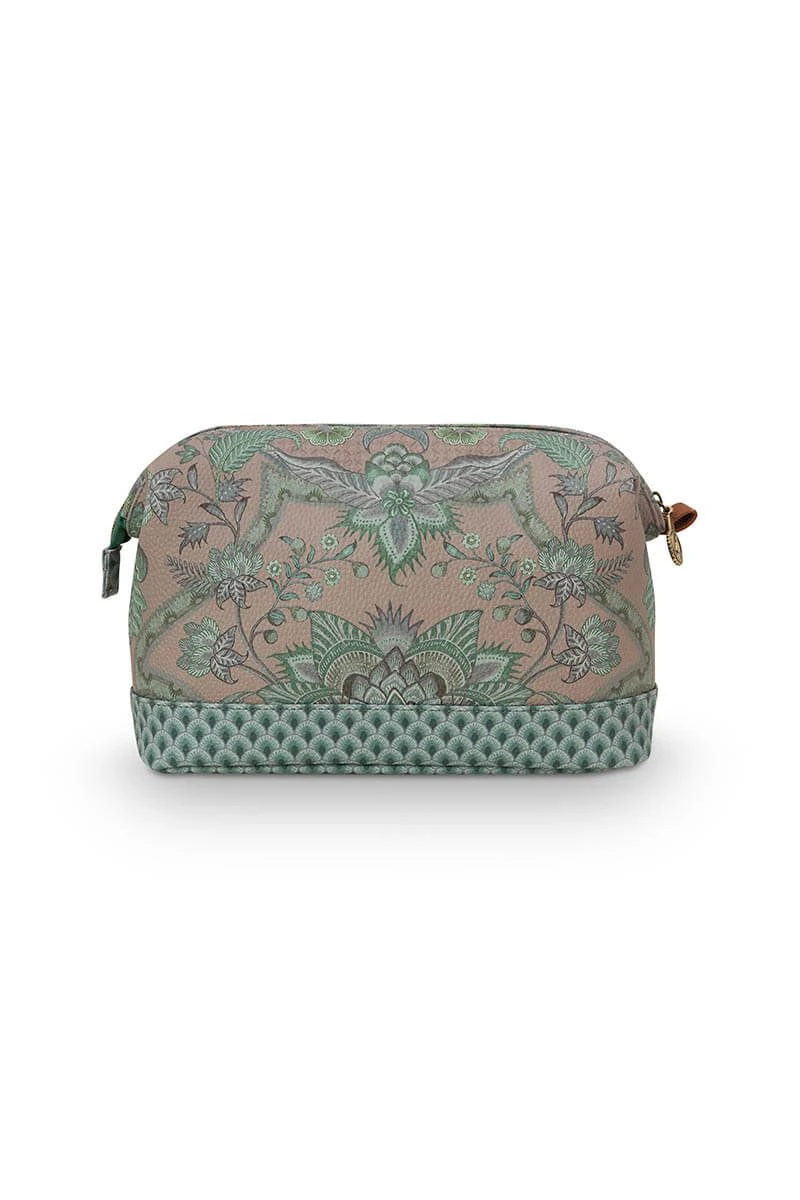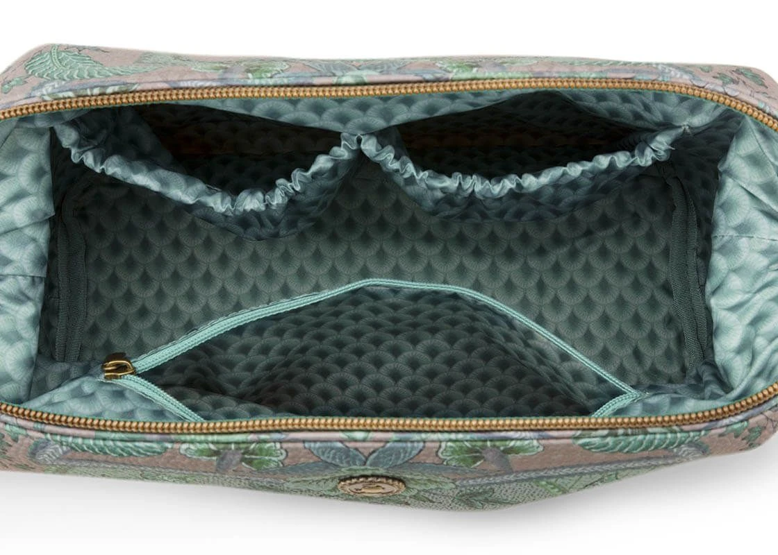 With this large toiletry bag from the Kyoto Festival collection you always have your favourite beauty products within reach. The toiletry bag is decorated with a unique variation of imaginative chintz flowers and leaves and has a pattern of stylized arches at the bottom. The toiletry bag has a large compartment and several small compartments and is finished on the inside with a design of stylized arches.