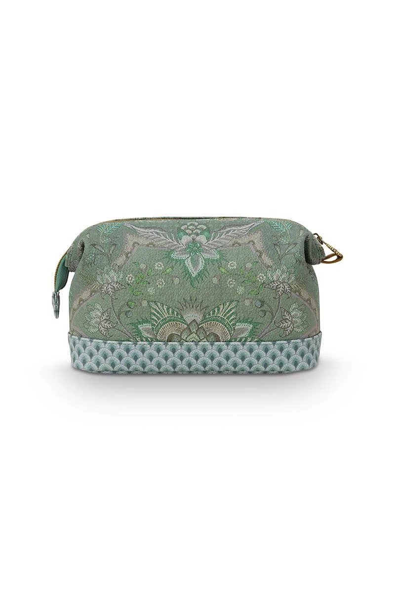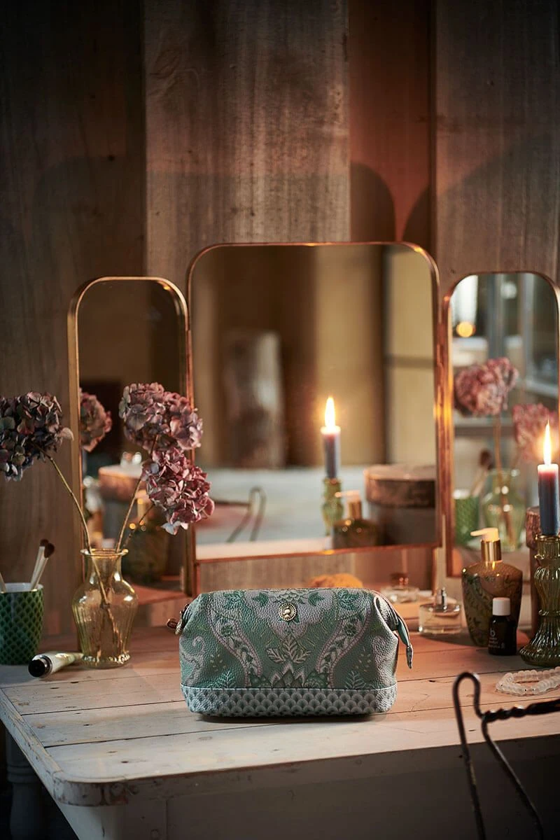 With this toiletry bag from the Kyoto Festival collection you always have your favourite beauty products within reach. The toiletry bag is decorated with a unique variation of imaginative chintz flowers and leaves and has a pattern of stylized arches at the bottom. The toiletry bag has a large compartment and several small compartments and is finished on the inside with a design of stylized arches.