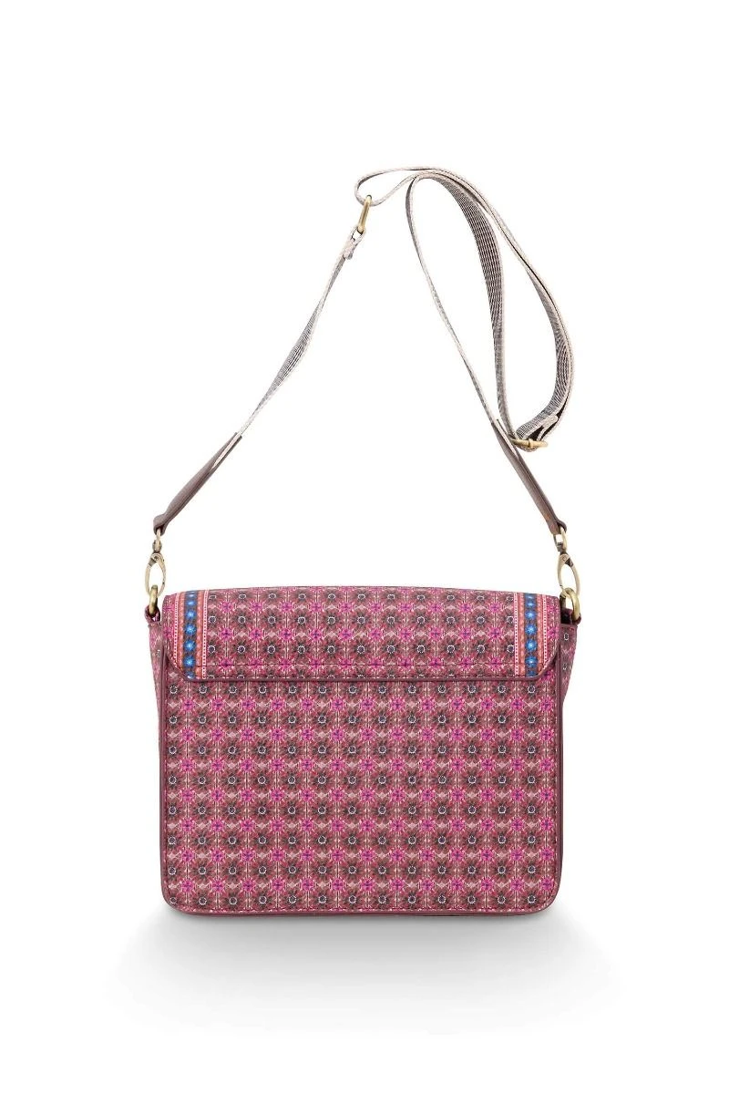 Leave the house in style with this small shoulder bag from the Clover collection. The shoulder bag is decorated with a repeated design of a stylized clover pattern and, in addition to a large storage compartment, also has a small compartment on the front and back in which you can store your important items such as your phone or keys.