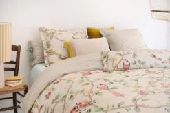Picture yourself in the Italian countryside with the Giardini di Frutta pillow. The design of the quilt features a mix of palm and fruit trees, and among the trees are references to Italian country life such as fountains, terracotta pots and garlands and here and there an olive picker. The cushion has a stitching pattern and on the back a pattern of shells. You can use the pillow on both sides. In combination with the quilt Giardini di Frutta you create the ultimate Pip mix & match effect.