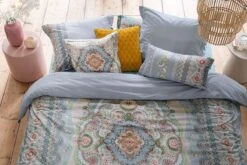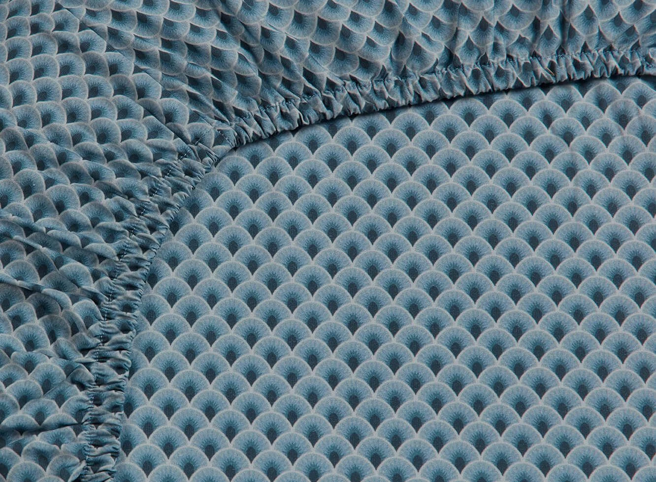 This blue fitted sheet is decorated with the organic Suki design. The print is an all-over stylised arch print with elegant details.