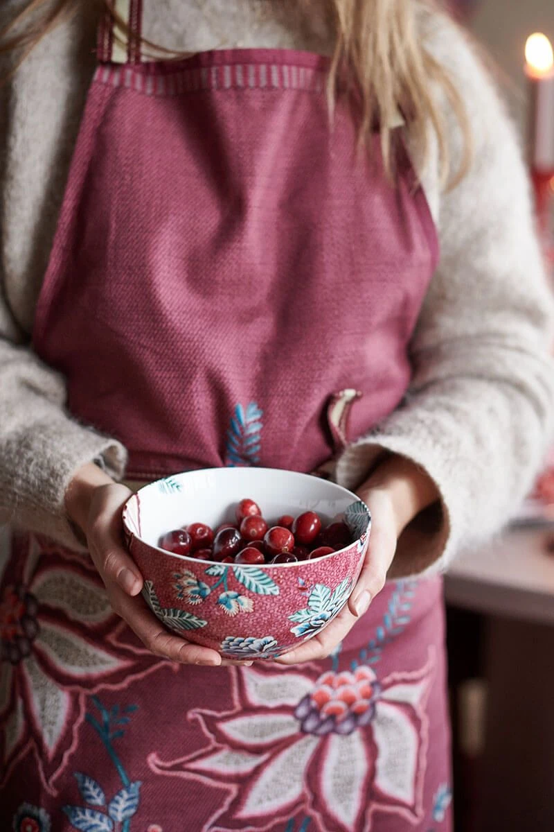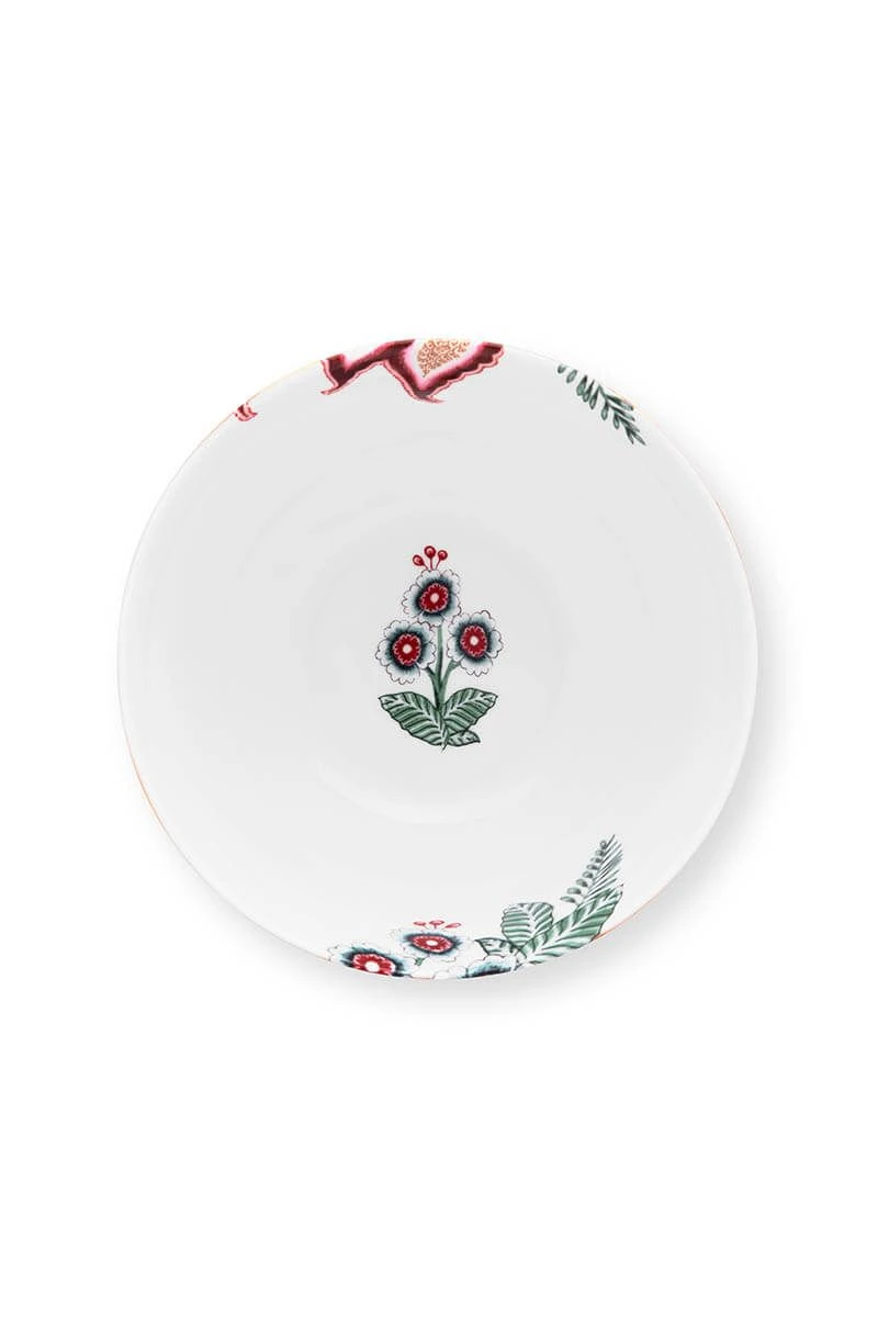 Brighten up your table with this bowl from the Flower Festival collection . The bowl has a floral design with imaginative red and pink chintz flowers with light blue and green leaves.