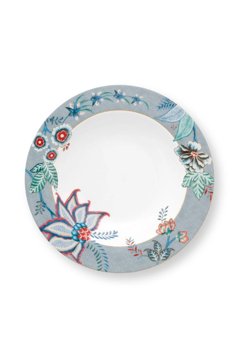 Add this Flower Festival 21.5 cm deep plate to your porcelain collection. Our deep plate has a blue background and is decorated with the elegant Flower Festival design. This rich floral pattern features a variety of fanciful red and pink chintz flowers with light blue and green leaves. The playfully positioned flower branches with elaborately decorated flowers and leaves give this elegant design an extra luxurious look and feel. Our Flower Festival porcelain will make your china cabinet and table shine.