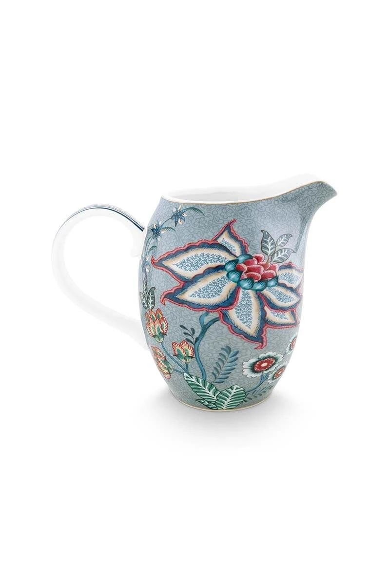 This charming jug is perfect porcelain lovers. Pour in style with the blue milk jug, decorated with the cheerful Flower Festival design. This rich floral pattern features a variety of fanciful red and pink chintz flowers with light blue and green leaves.