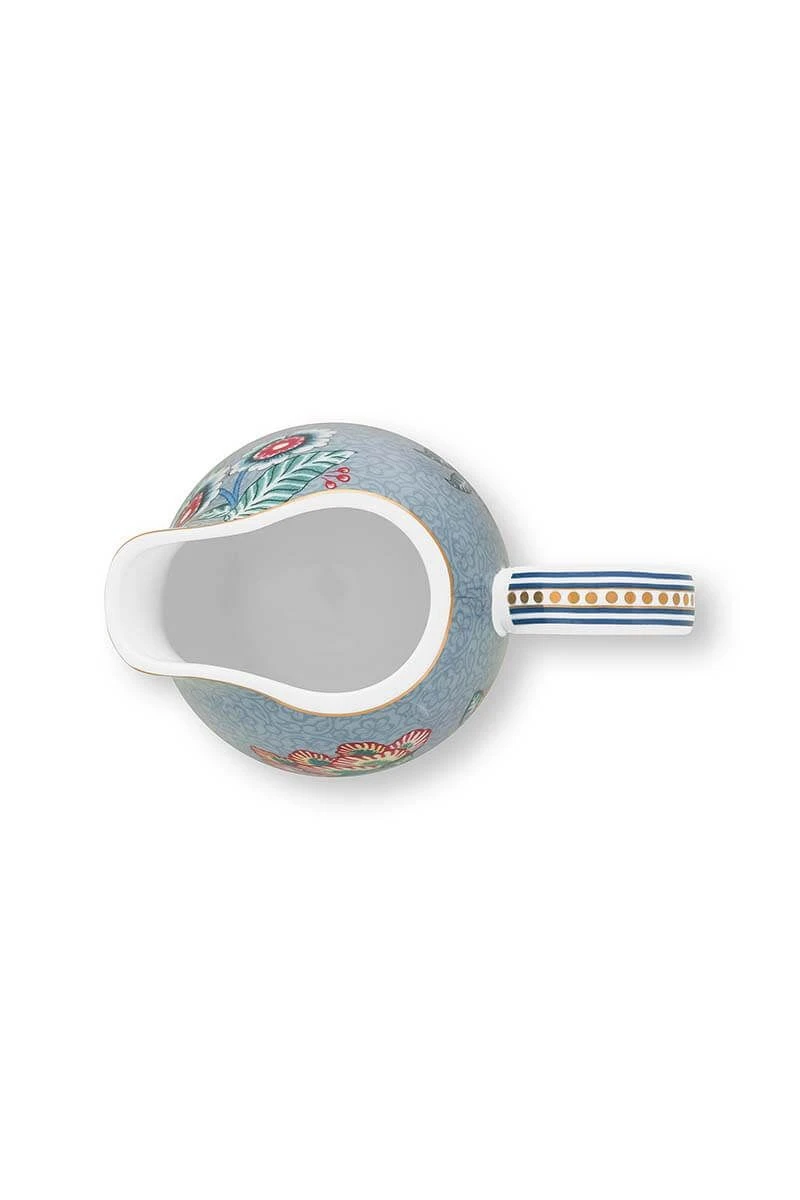 This charming milk jug is perfect for coffee & tea lovers. Pour in style with the blue milk jug, decorated with the cheerful Flower Festival design. This rich floral pattern features a variety of fanciful red and pink chintz flowers with light blue and green leaves.