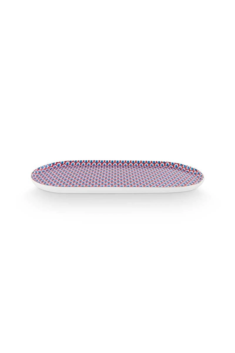 This sugar & creamer plate is decorated with the cheerful Flower Festival design. This rich floral pattern features a variety of fanciful red and pink chintz flowers with light blue and green leaves.