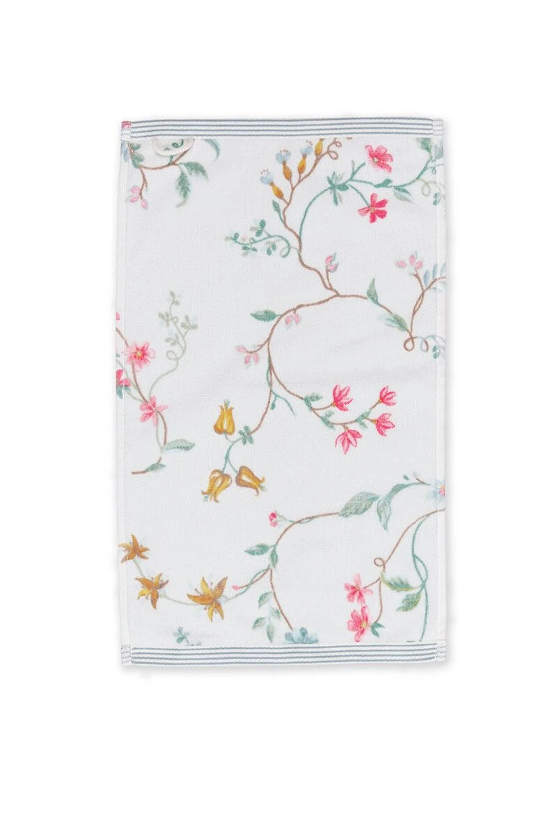 Refresh your bath linen stack with the white Les Fleurs guest towel. The Les Fleurs Guest Towels feature a print of elegant flower branches with small, stylized flowers. The Les Fleurs bath linen series pairs beautifully with the other bath linen series by Pip Studio, which creates a lovely mix-and-match effect in your bathroom.