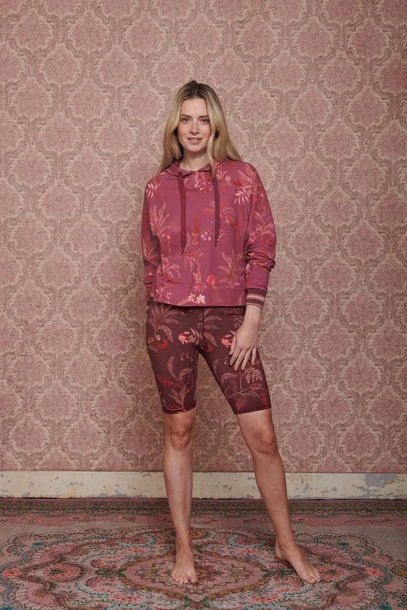 This pink hoodie features the playful Isola design. The print is made up of a refined print of multi-colored twigs and ferns. The hoodie has a hood and matching strings.