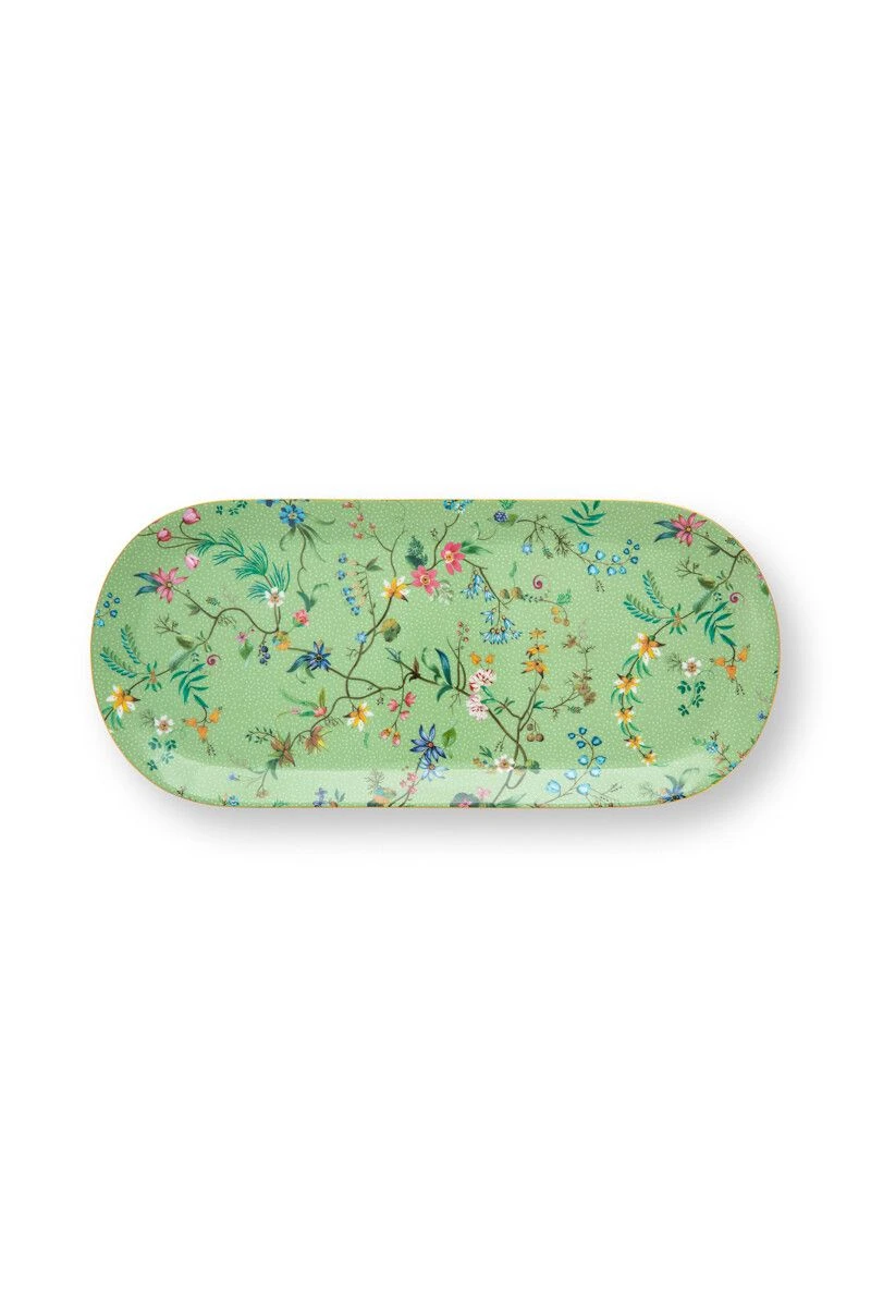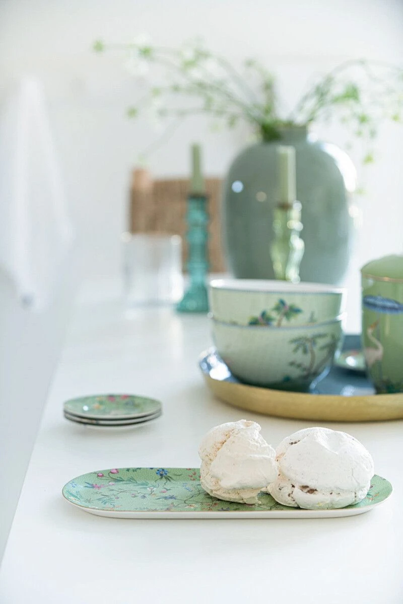 This green rectangular cake platter is decorated with various colourful flowers. It will take you to a happy place and is perfect to use at a high tea with friends. The cake platter is ideal to serve little bites, or to use as a platter for your milk jug and sugar bowl. Take a look at the rest of the Jolie collection for inspiration to combine.