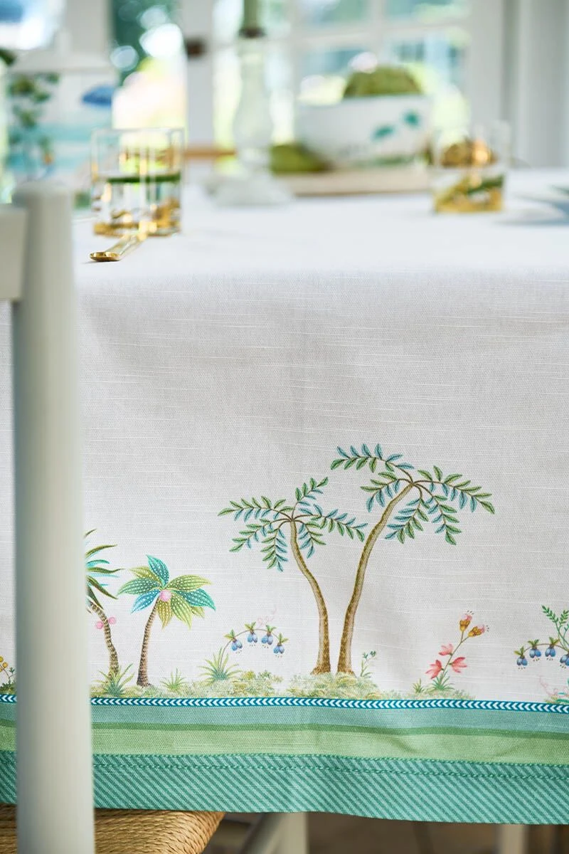 This white tablecloth is minimalist decorated with unique trees, flowers and a heron from the Jolie collection. This gives an elegant look. Mix and match with the Jolie tea towels to make it a beautiful whole.