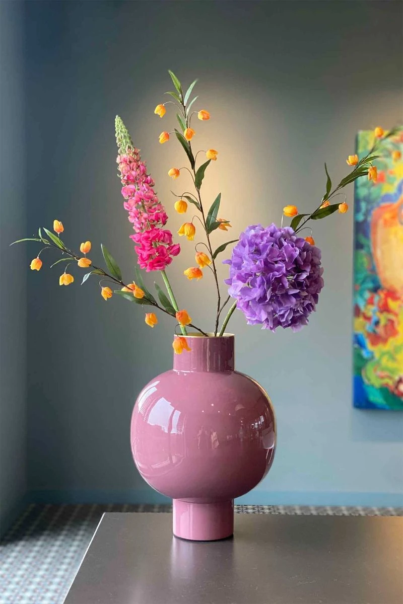 Give your interior more colour with this unique old pink vase. Give your flowers the stage they deserve with this vase.