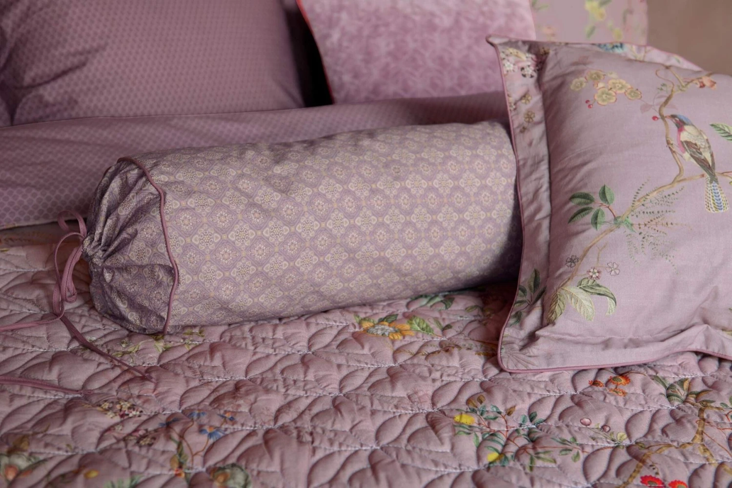 The neck roll Autunno is detailed with a small geometric design. The detailed tie closure makes the cushion totally Pip.