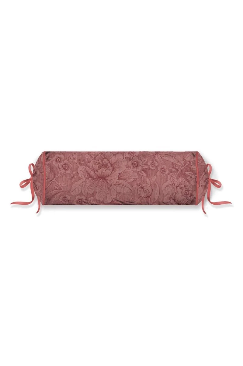 The neck roll Casa dei Fiore has large fantasy flowers and leaves drawn in fine lines. The detailed tie closure makes it totally Pip.