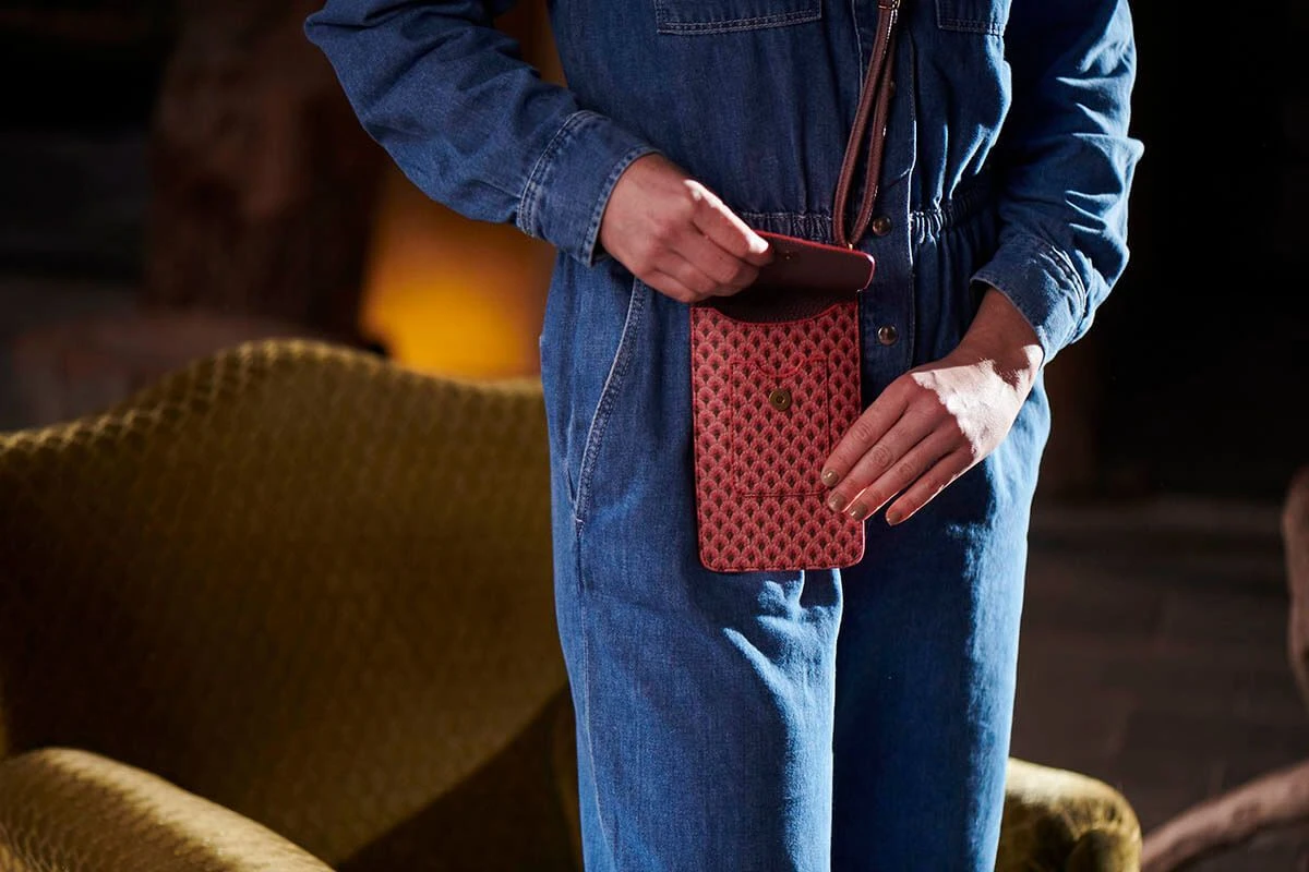 Take your phone with you in style with this phone bag from the Suki collection. Decorated with an all-over print of stylized arches with refined details, the phone bag has enough space for a phone and your most important card.