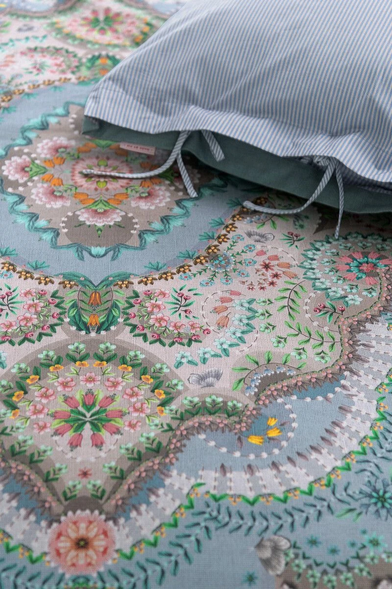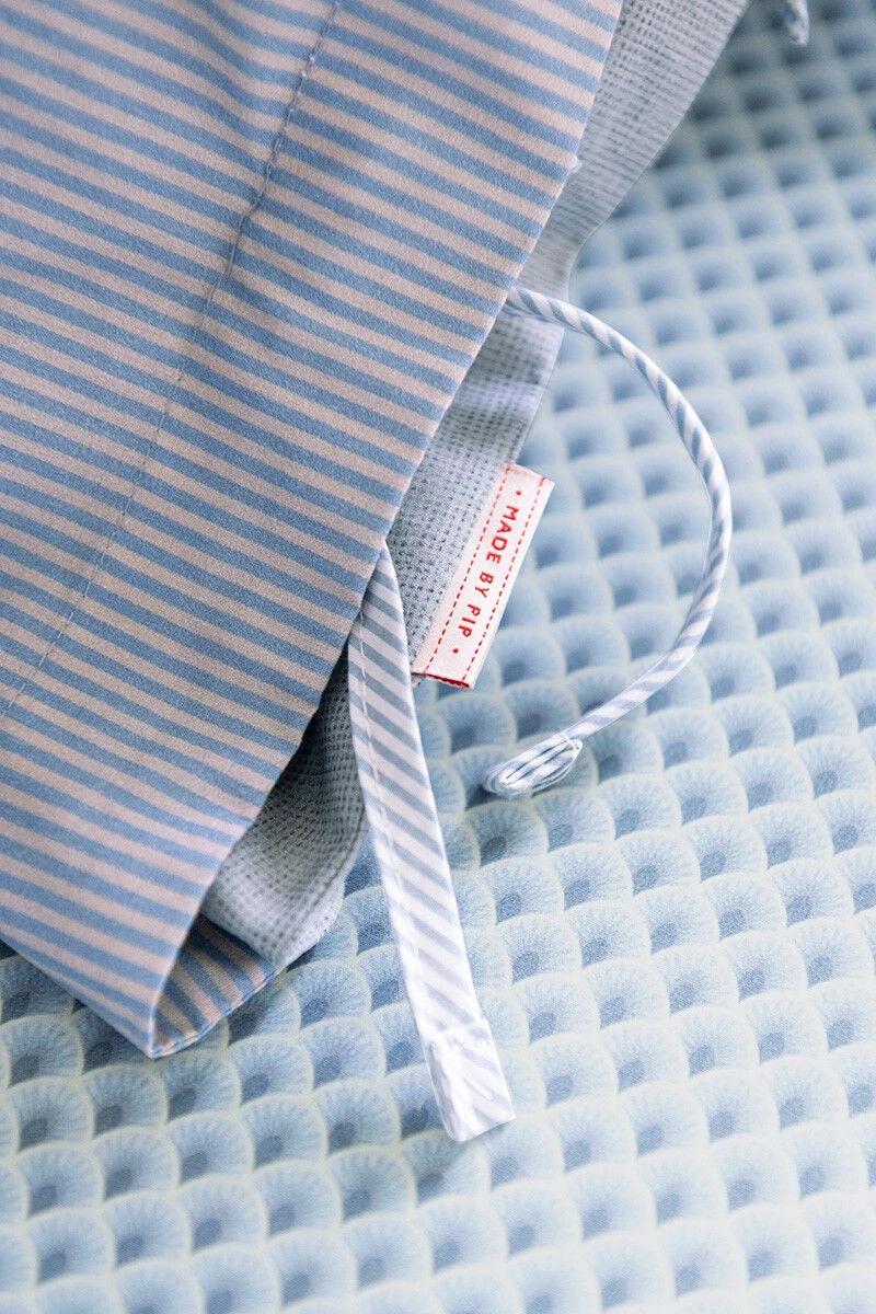 The pillow case has an Oxford edge and striped piping on the sides, as well as a unique tie closure in accent colours. A stylised striped print adorns the back of the pillow case, so that both sides can be used. This provides a wonderful mix & match effect on your bed.