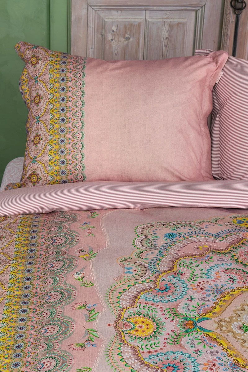 The pillow case has an Oxford edge and striped piping on the sides, as well as a unique tie closure in accent colours. A stylised striped print adorns the back of the pillow case, so that both sides can be used. This provides a wonderful mix & match effect on your bed.