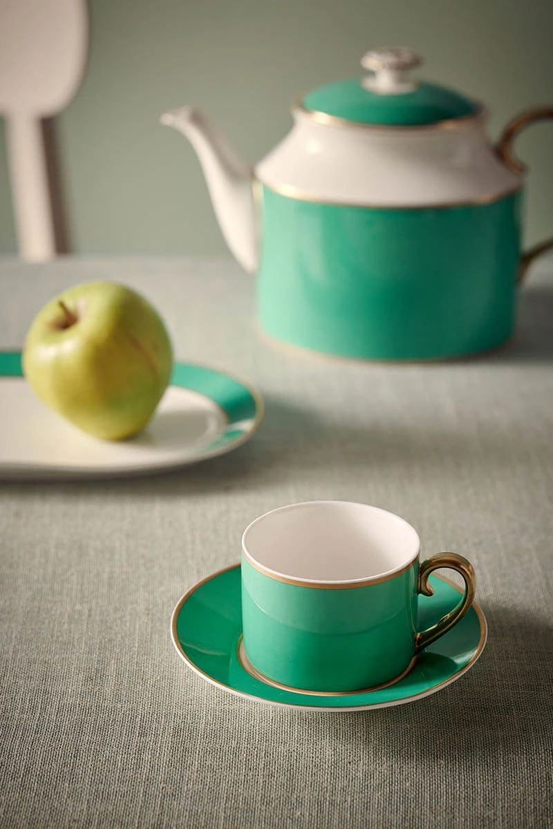 This cappuccino cup & saucer has a green design with a gold handle. This cappuccino cup is perfect to mix with the other cups of this collection or our Heritage collection. The Porcelain is made of bone China, a high-quality thin porcelain with a sophisticated design. Also available in 120 ml. Have a look at the full Pip Chique collection for more inspiration.