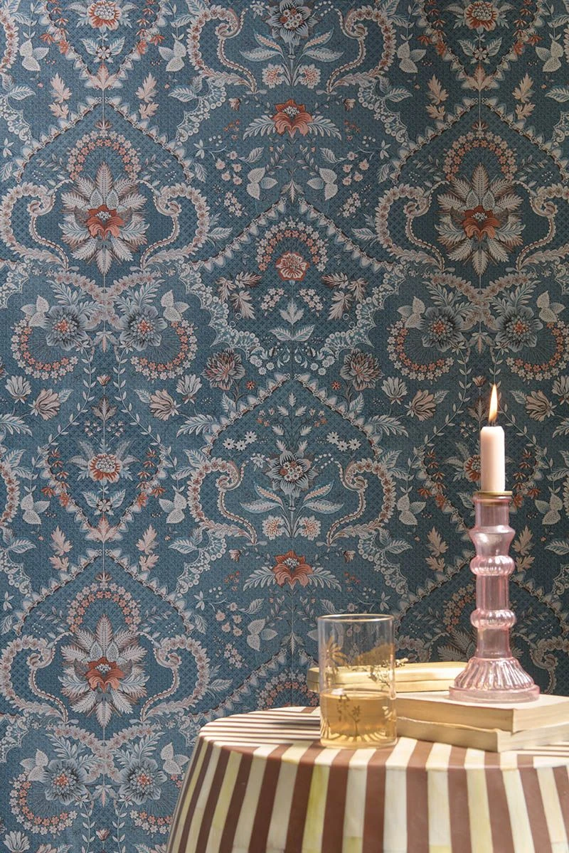 Give your home a magical make-over with this stunning Saluti wallpaper in the colour green. The Saluti design is a symmetrically constructed floral pattern inspired by the beautiful wallpaper motifs from Italy. The sophisticated flowers are painted in tonal colours with the occasional accent colour, making it easy to combine with the rest of the Pip Studio collection. The Saluti wallpaper is available in different colours: mauve and denim blue. This design is printed on a non-woven surface with a vinyl top layer.