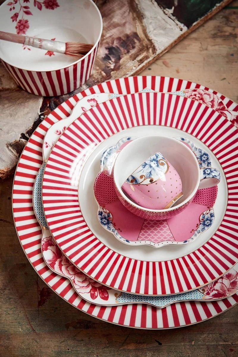 Part of our Royal Stripes collection, the plate Royal Stripes. This plate has a dark pink striped design with a white background in the centre. The plate is finished with golden details and perfect to mix with the other plates of this collection. Also available in sizes: 12 cm, 17 cm and 25,6 cm. Have a look at the full Royal Stripes or Royal White and Multi collection for more inspiration.