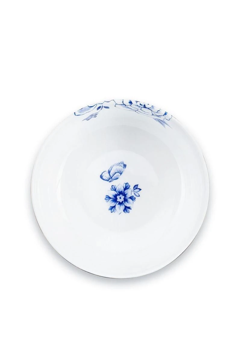 This dish is part of the Royal White porcelain set. Royal White is refined porcelain with subtle blue painted features and golden elements.