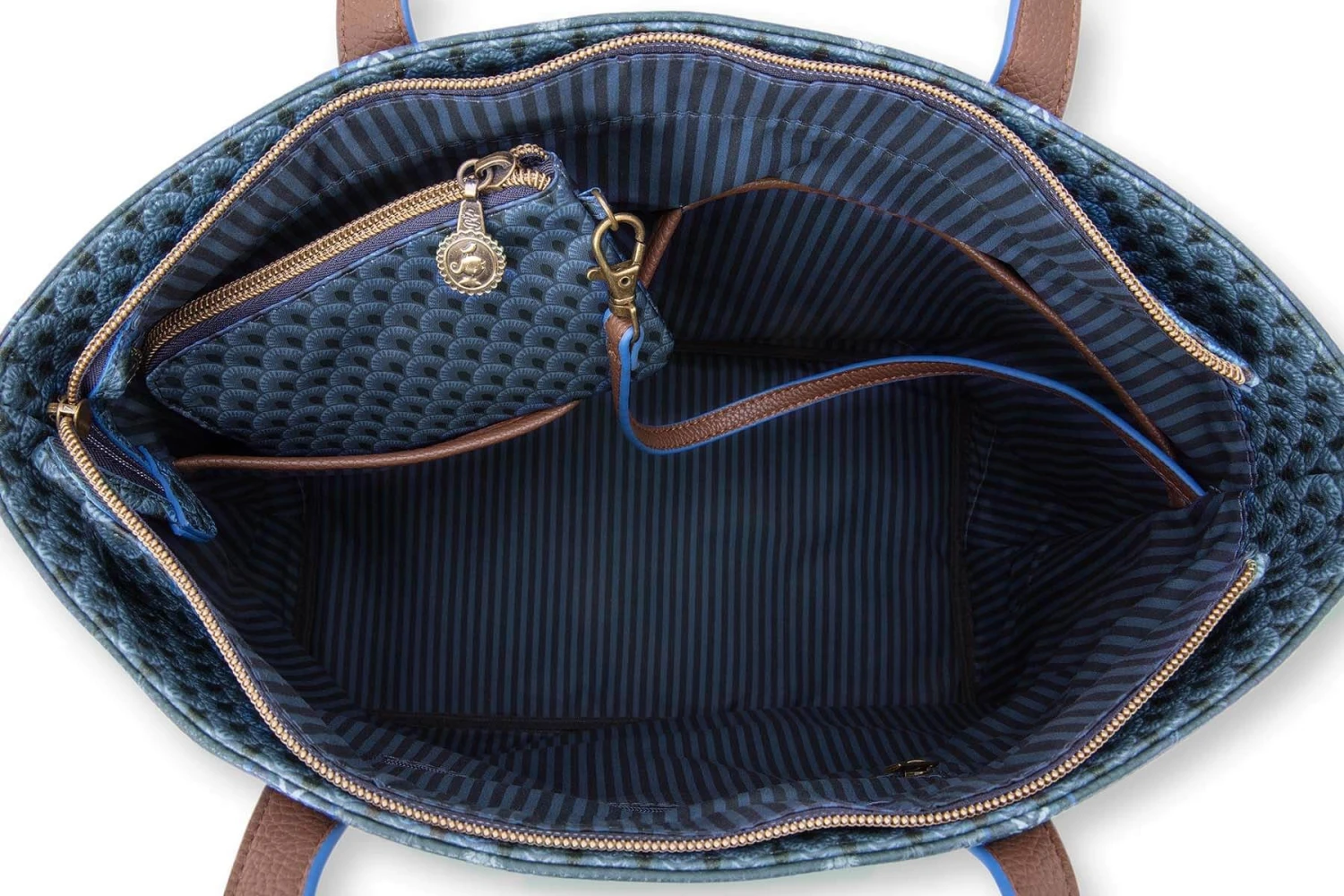 Looking for a stylish shopper for everyday use? Good news! We have one that’s as gorgeous as it is practical. Our shopper is decorated with a unique variety of fanciful chintz flowers and leaves. Symmetrically placed flower branches with elaborately decorated flowers give the design a luxurious flair. Apart from a large storage space, the bag also has a small compartment for holding essentials like your phone or keys. This product is also made of PU, a synthetic material that is a sustainable alternative to leather.