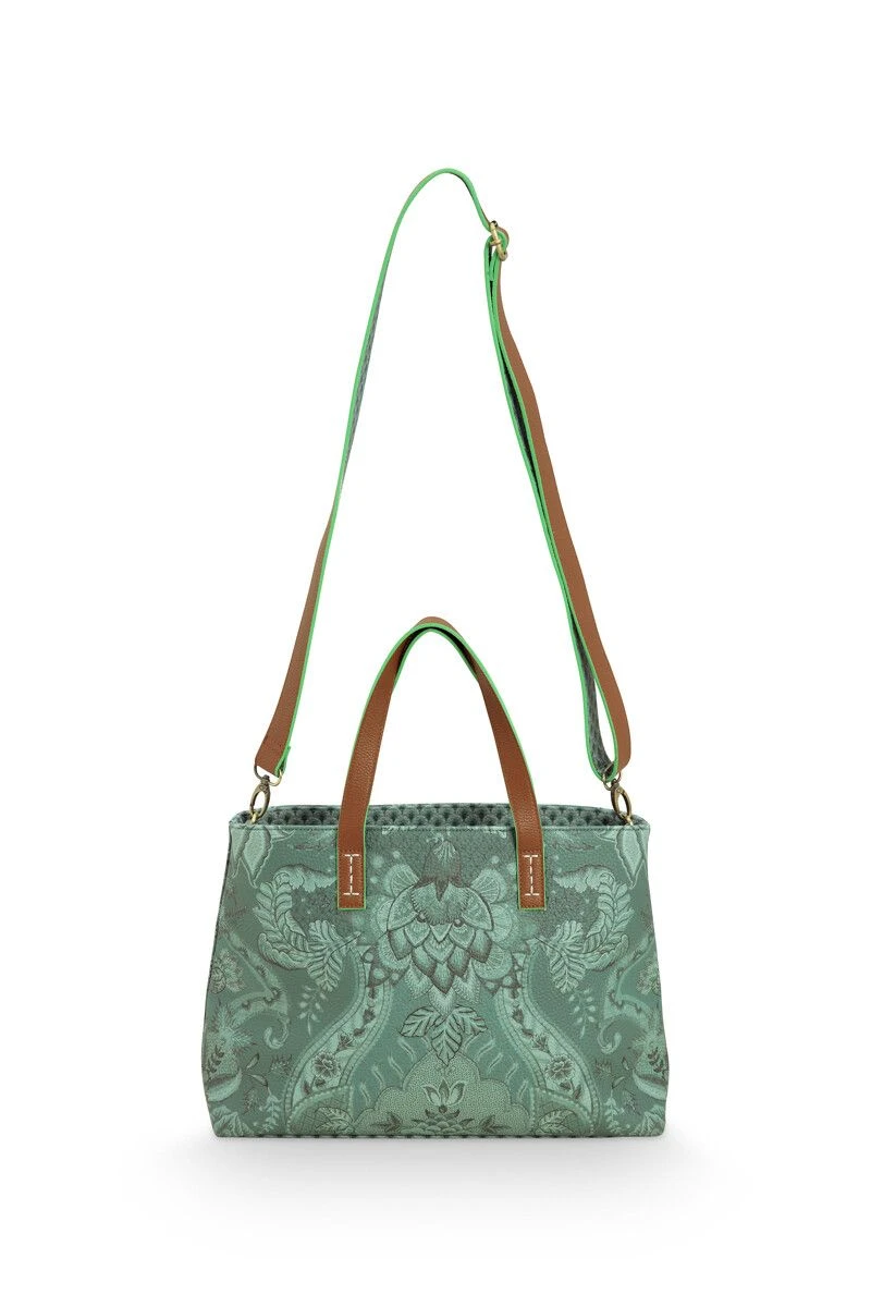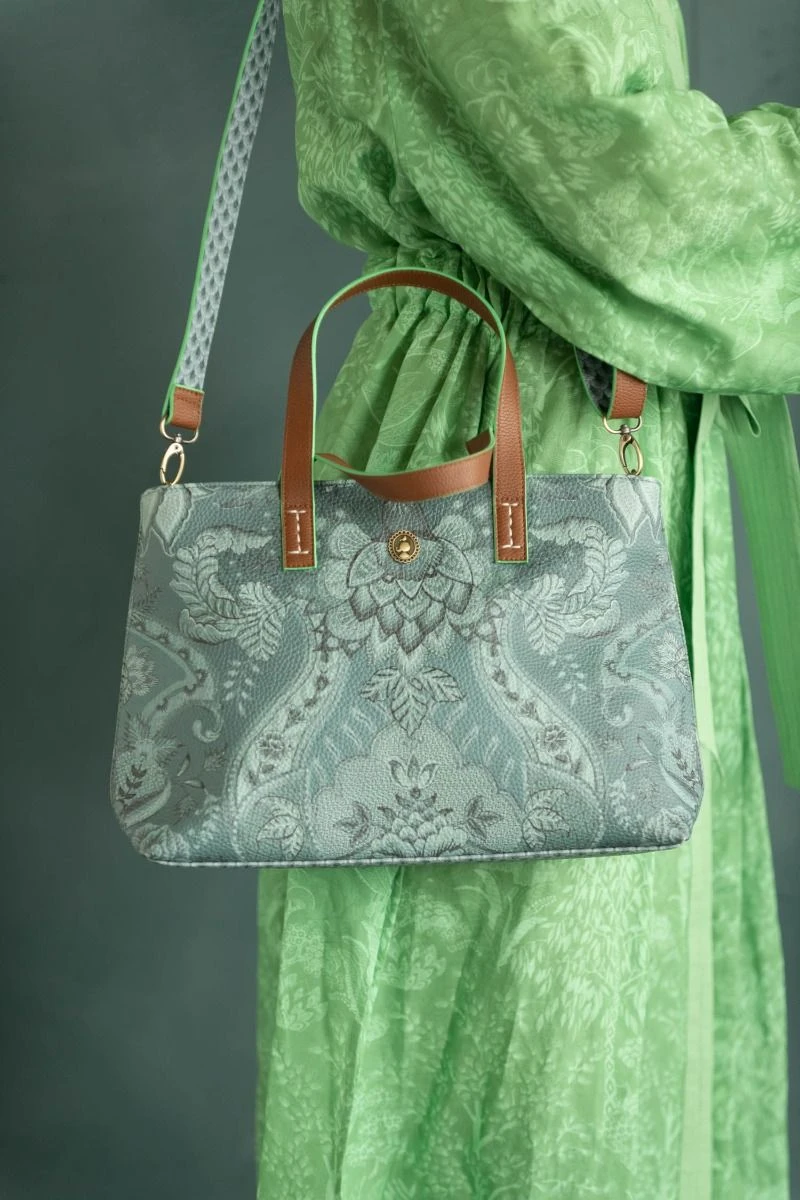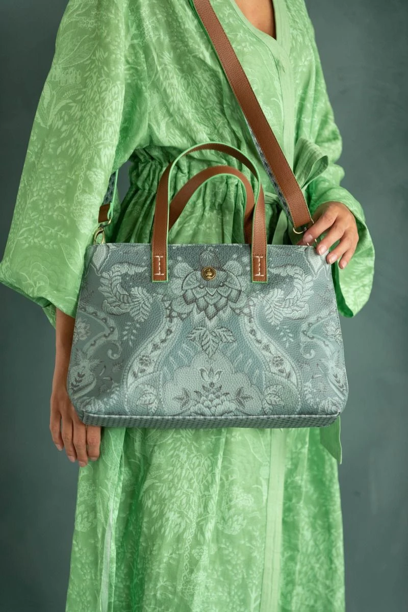 Looking for a stylish shopper for everyday use? Good news! We have one that’s as gorgeous as it is practical. Our shopper is decorated with a unique variety of fanciful chintz flowers and leaves. Symmetrically placed flower branches with elaborately decorated flowers give the design a luxurious flair. Apart from a large storage space, the bag also has a small compartment for holding essentials like your phone or keys. This product is also made of PU, a synthetic material that is a sustainable alternative to leather.