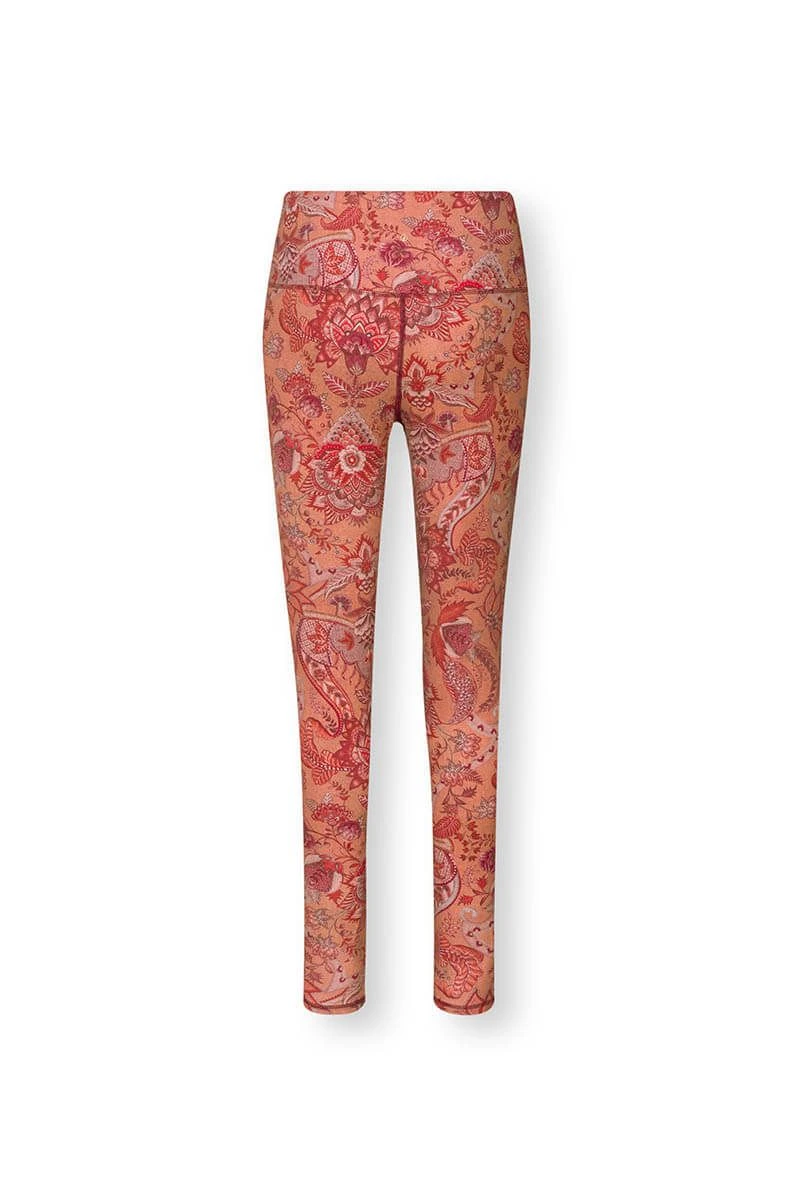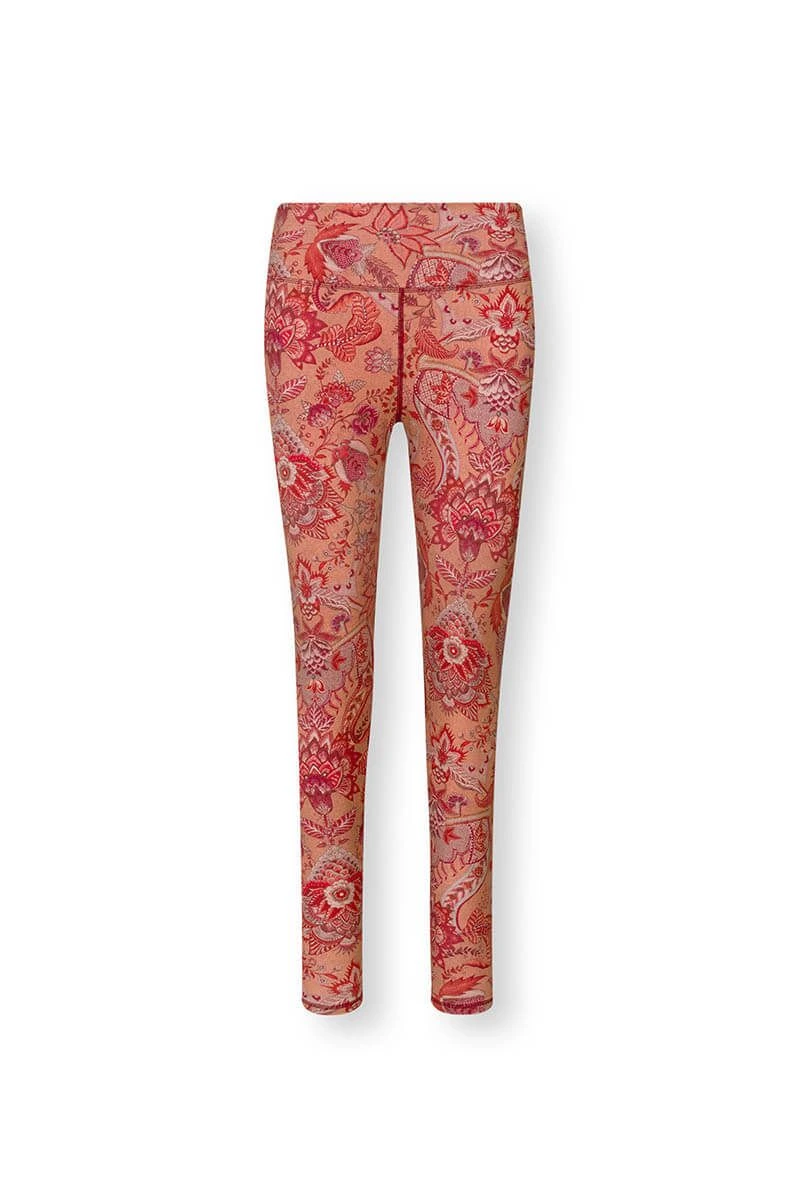 These long sport leggings in terra pink are decorated with the cheerful Kyoto Festival design. The repeated floral design is made up of a variation of imaginative chintz flowers and leaves. The waist is made of an elastic fabric for a comfortable and flattering fit.