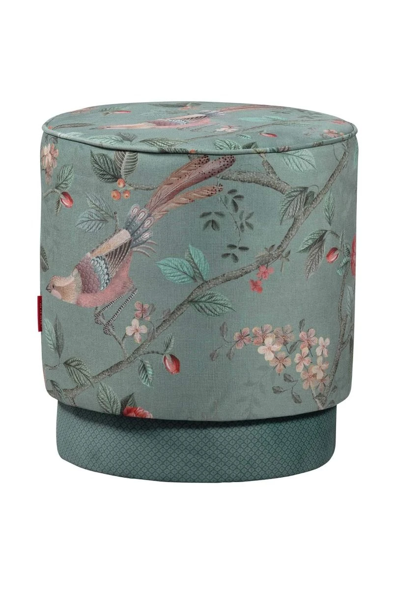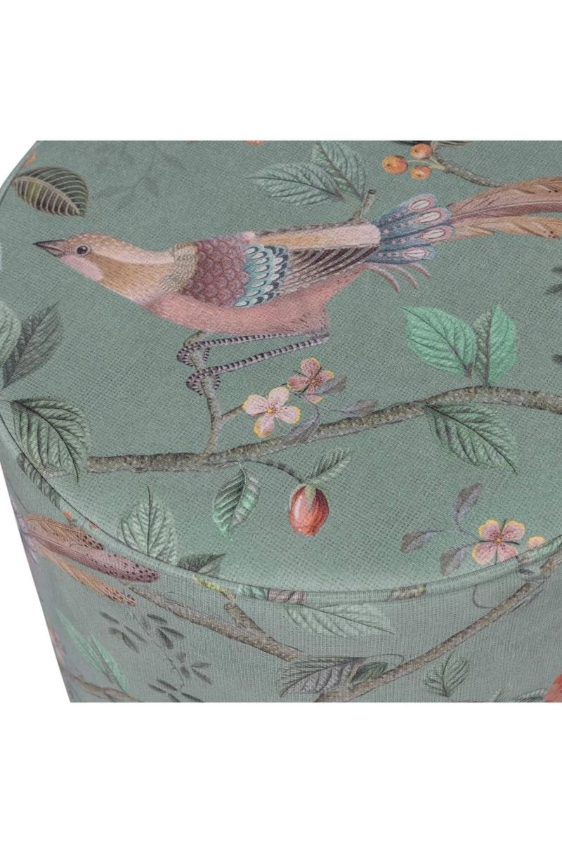 Give your home a magical make-over with this beautiful Good Nightingale stool high in the colour green. If you’re a real bird lover, the Good Nightingale collection is the perfect choice! Among the branches and flowers of this cheerful design, all kinds of unique species of birds are hidden. The bottom has a Lace Flower print.