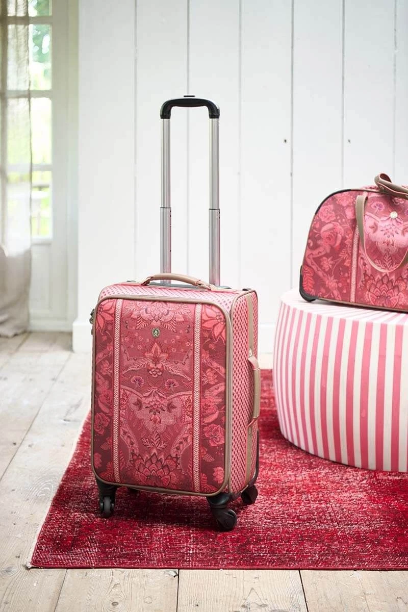 The new trolley on wheels in the color dark pink with the Kyoto Fesitval design is a great trolley for traveling. This suitcase has a large storage compartment for your clothes and shoes, in which you can find 3 side pockets. One with a zipper and two with an elastic band. The outer and inner material are water repellent, so it is perfect for any weather forecast. At the bottom of the suitcase you will find 4 wheels, each of which can rotate 360 ​​degrees. The size of the suitcase makes it suitable for handluggage in the cabin.