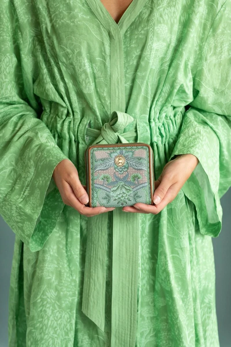 Looking for a stylish wallet for everyday use? Good news! We have one that’s as gorgeous as it is practical. This square wallet is decorated with a unique variety of fanciful chintz flowers and leaves. Symmetrically placed flower branches with elaborately decorated flowers give the design a luxurious flair. The wallet has several compartments for safely storing all of your cards. This product is also made of PU, a synthetic material that is a sustainable alternative to leather.
