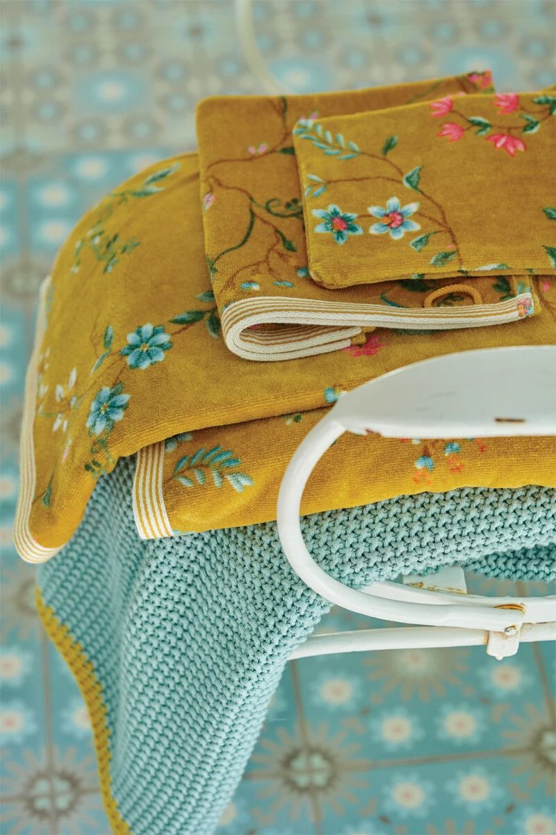 The yellow Les Fleurs wash cloths feature a print of elegant flower branches with small, stylized flowers. The Les Fleurs bath linen series pairs beautifully with the other bath linen series by Pip Studio, which creates a lovely mix-and-match effect in your bathroom.