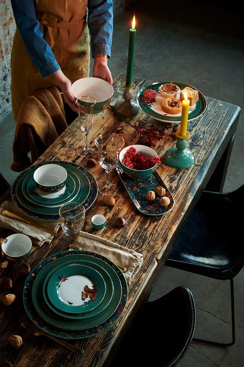 A beautiful dark blue dinner plate made of timeless porcelain. Patterned with an elegant design of berries, acorns and seasonal fowers from our Winter Wonderland collection. Ideal for adding a decorative base to the table setting, before placing a smaller plate or bowl on top. You are guaranteed to bring your dining table in a cozy winter atmosphere for those special dinners with family and friends.